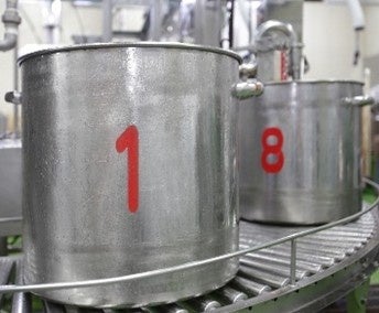 全国に商品を送り出すようになった今でも、レストランの厨房でつくるように、手づくりの工程を多く残しながら、工場で働くひとりひとりが丁寧に心を込めて作っています。大量生産では作れない「おいしさ」を守るために、ドレッシングの仕込みには、レストランの厨房で使うサイズの2倍の大きさの“寸胴鍋”で一日に何度『少しずつをたくさん』繰り返し作っています。巨大なタンクで一気に作ることはせず、味がぶれないよう、効率よりもおいしさに重きをおいた作り方を続けています。