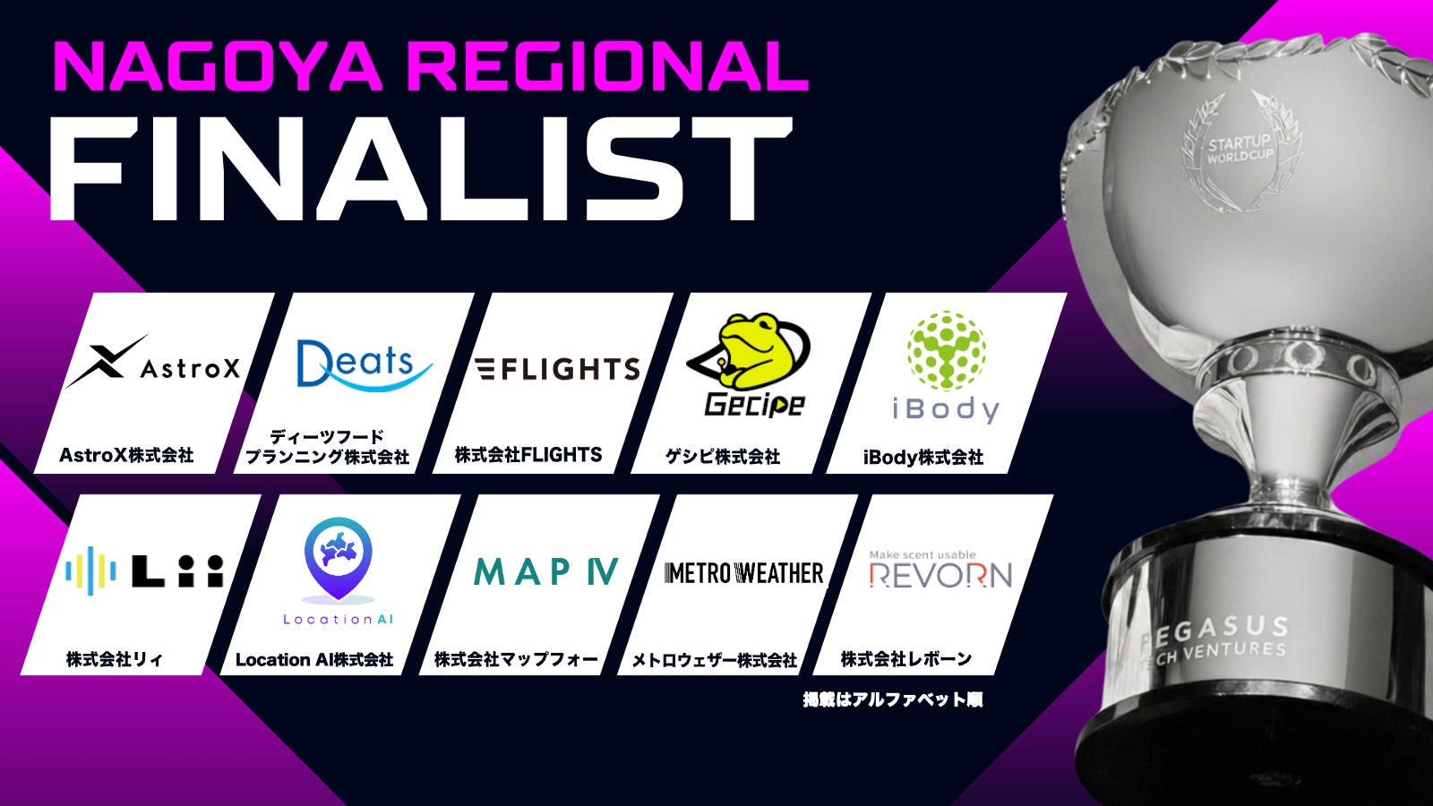 ペガサス・テック・ベンチャーズ(本社:米カリフォルニア州サンノゼ、代表:アニス・ウッザマン)は、「スタートアップワールドカップ2026」名古屋予選に登壇するファイナリスト10社の決定をお知らせいたします。