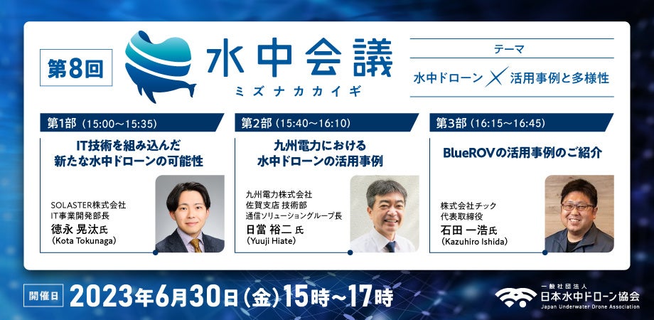 ~「水中ドローン」×「〇〇」をテーマにブルーエコノミーの今・未来・可能性を探る~一社)日本水中ドローン協会主催のウェビナー。第8回は注目の水中ドローン活用事業社・新メーカーの3社が登壇!