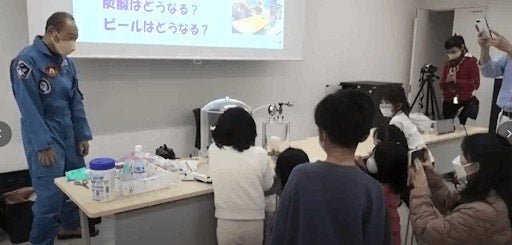 また、水の沸騰の実験では、真空中では36度でも水が沸騰することを体験し、驚きの声とともに宇宙服の重要性と、宇宙空間での人体への影響、科学的な進歩も実験を通じて学ぶ時間となりました。