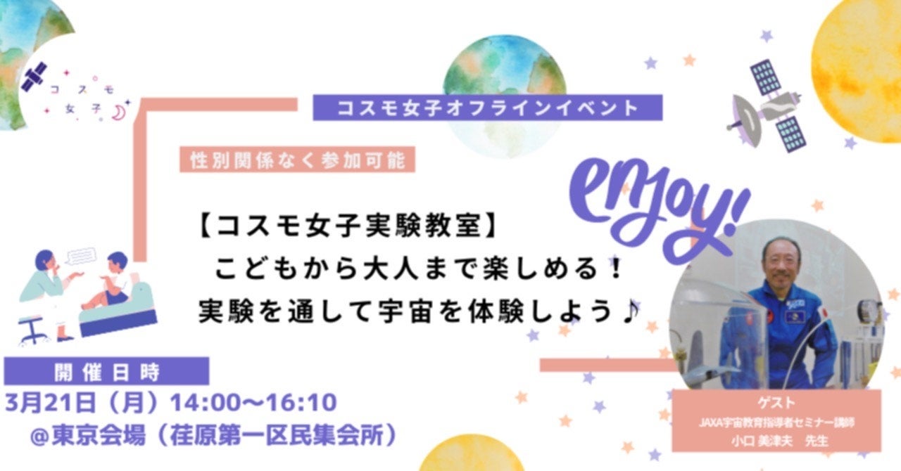 わたしたちコスモ女子も、「宇宙を身近な存在に」をテーマに、宇宙について体験して学べる機会や、宇宙業界に携わる著名な方々に講師としてご登壇いただく機会を創るなど、引き続きより多くの方々と宇宙について学び、共に宇宙業界を身近に感じ、活躍する人のきっかけや宇宙業界の発展に寄与できるよう活動を続けてまいります。