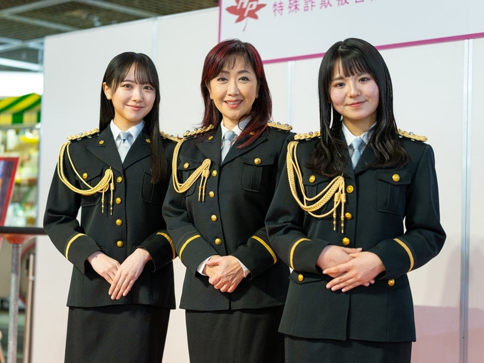 伍代夏子 特別防犯支援官、STU48 石田千穂 特別防犯支援官・峯吉愛梨沙 特別防犯支援官 広島にて「犯人と話をしないための電話の防犯対策」を呼び掛け