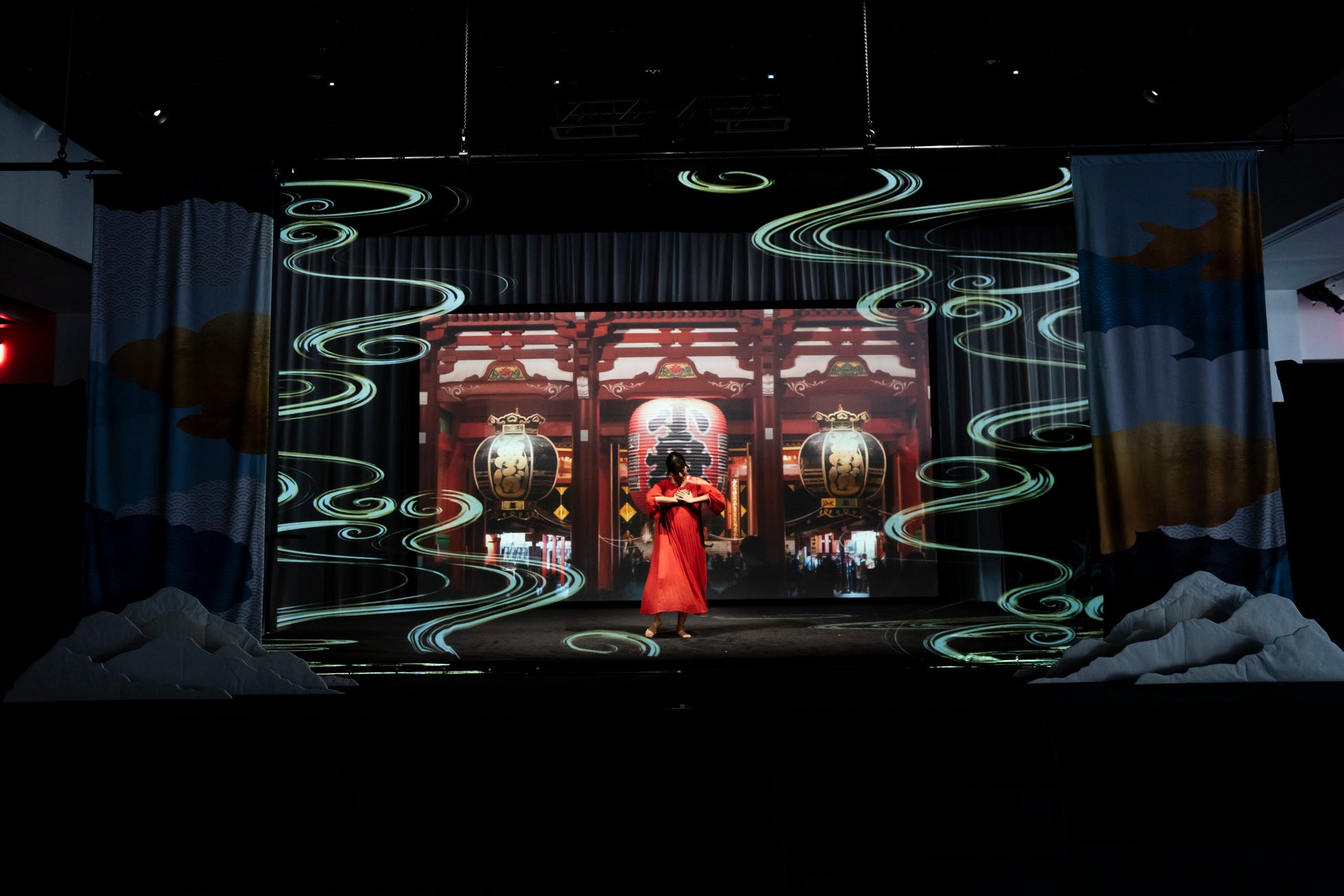 【内容】 「DISCOVER Japan’s NEW TREASURES」をテーマに、忍者のアクションダンス・日本舞踊・コンテンポラリーダンスの3部構成のライブパフォーマンスと、ホログラムスクリーンに投影した日本の美しい風景や伝統文化のモチーフ、デジタルアートコンテンツの融合による3Dプロジェクションショーを披露しました。