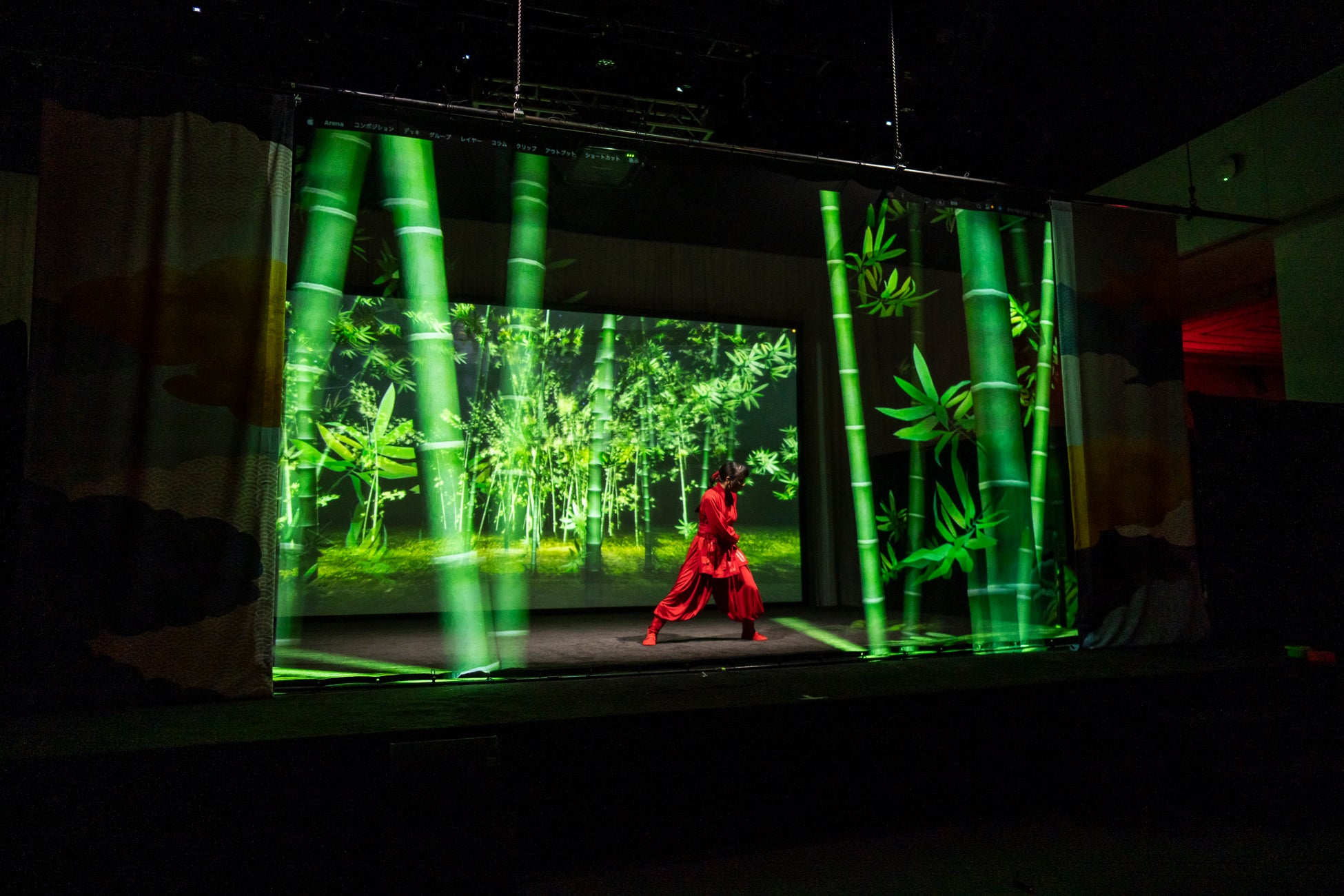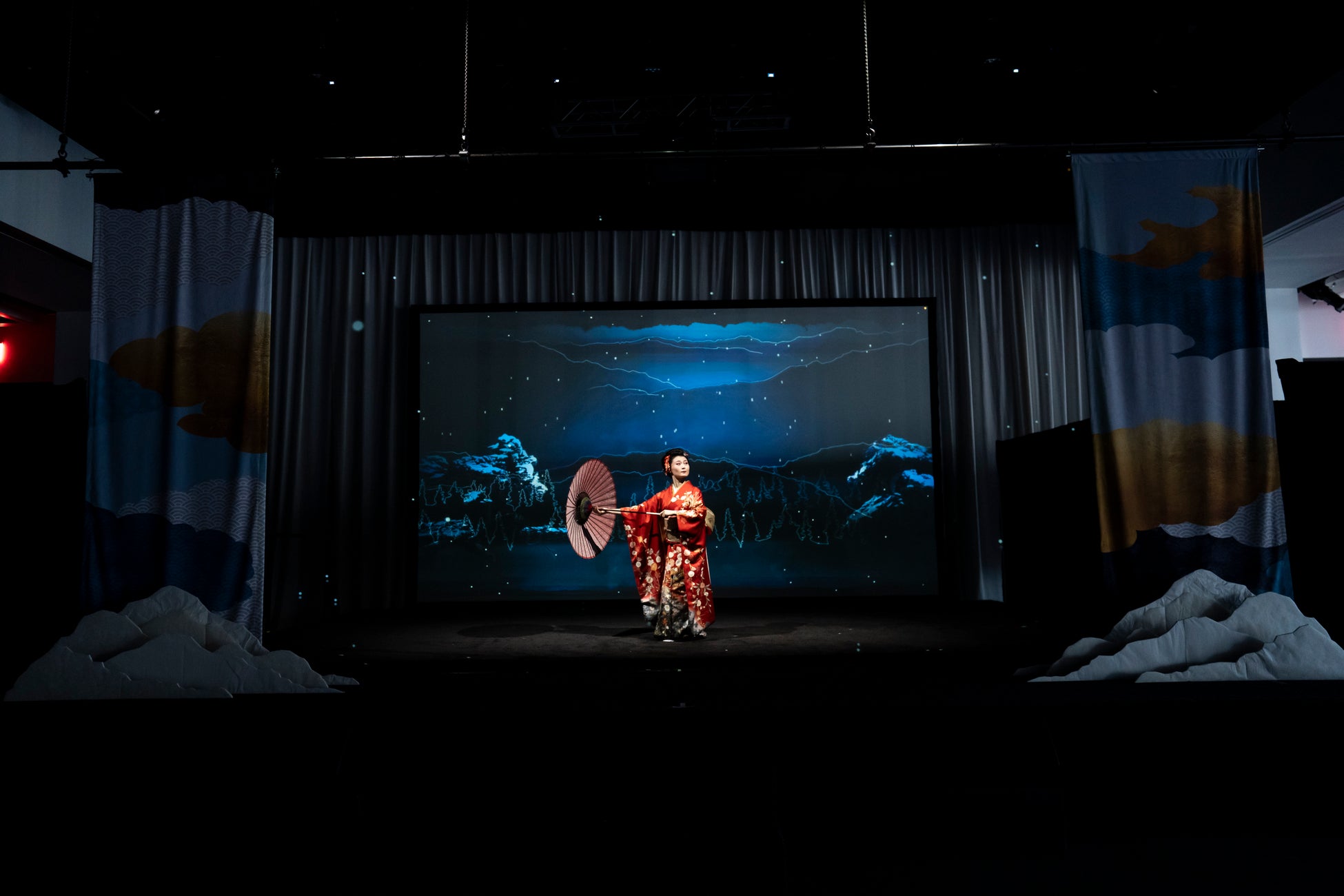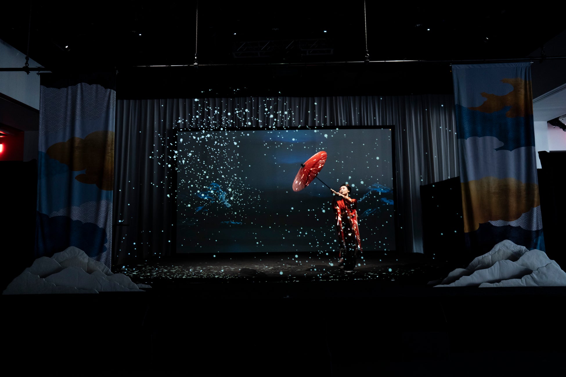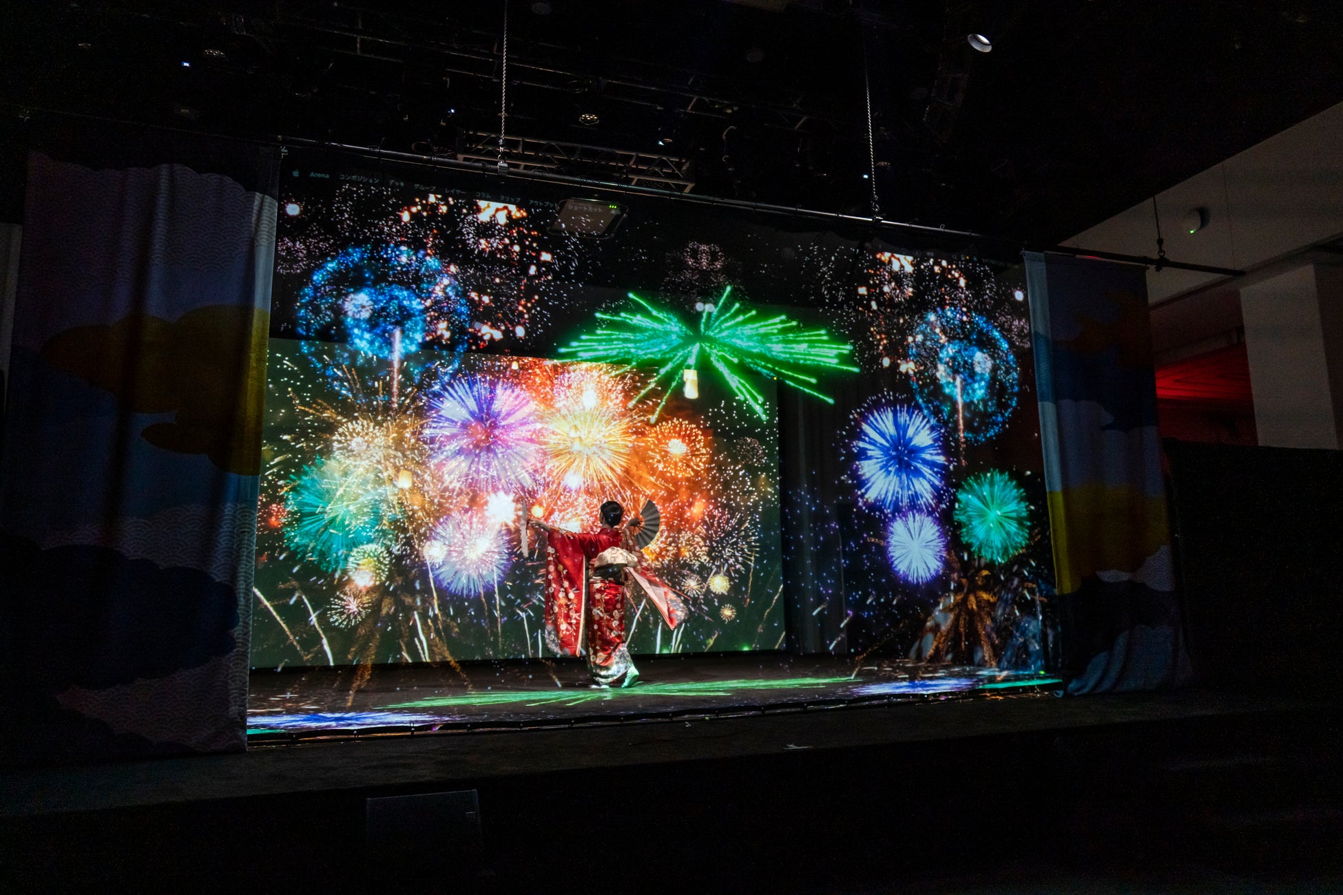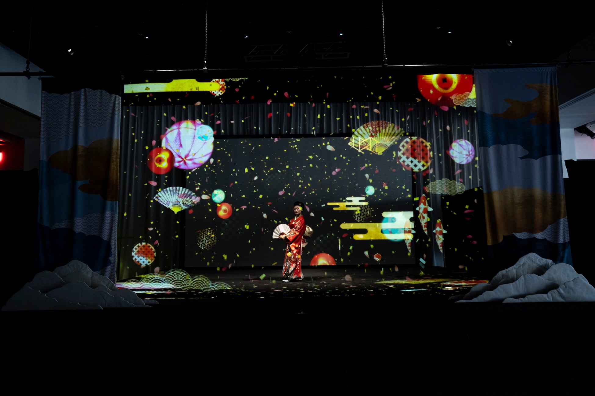 忍者・日本舞踊・コンテンポラリーダンスのライブパフォーマンスとホログラムスクリーンに投影した日本の美しい風景や伝統文化のモチーフ、デジタルアートの融合による3Dプロジェクションショーを披露。