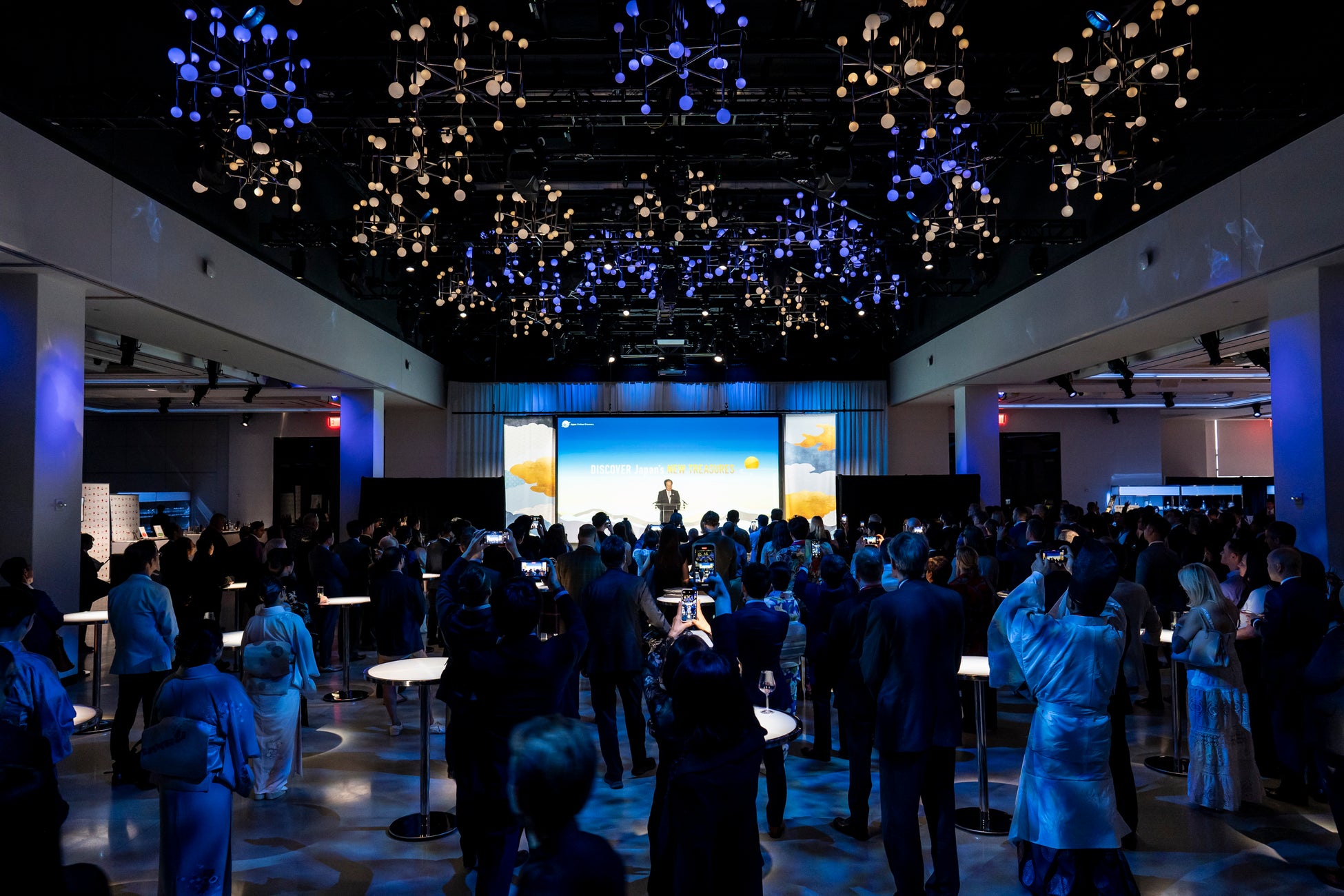 観光庁主催・農林水産省共催による国連総会サイドイベント・訪日観光レセプション「DISCOVER Japan’s NEW TREASURES」が9月20日(水)(日本時間9月21日(木))にThe Glasshouse(アメリカ合衆国・ニューヨーク市)で開催され、株式会社一旗(代表取締役:東山武明)がプロデュースするオープニングショー(3Dプロジェクションショー)を行いました。この催しは、国連が開催され世界の注目が集まるニューヨークにて米国からの訪日観光と消費拡大を更に推進し、さらには双方向の観光交流の拡大に繋げるため観光庁主催・農林水産省共催により開催されたもので、観光再始動事業採択事業者代表として株式会社一旗がプロデュースしたオープニングショーでは「DISCOVER Japan’s NEW TREASURES」をテーマに、忍者のアクションダンス・日本舞踊・コンテンポラリーダンスの3部構成のライブパフォーマンスと、ホログラムスクリーンに投影した日本の美しい風景や伝統文化のモチーフ、デジタルアートコンテンツの融合による3Dプロジェクションショーを披露しました。