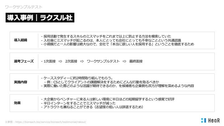 (参照:https://www.hear.co.jp/recruit/work-sample-test)
