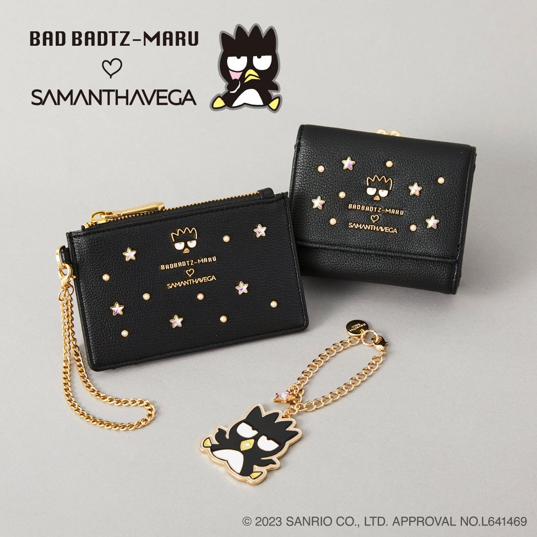 スタッズ×星型ストーンでクールな印象の折財布&マルチケースには、金具部分にバッドばつ丸がデザインされ、さりげなくお持ちいただけます。お茶目なバッドばつ丸の可愛さが溢れるバッグチャームはインパクト抜群。