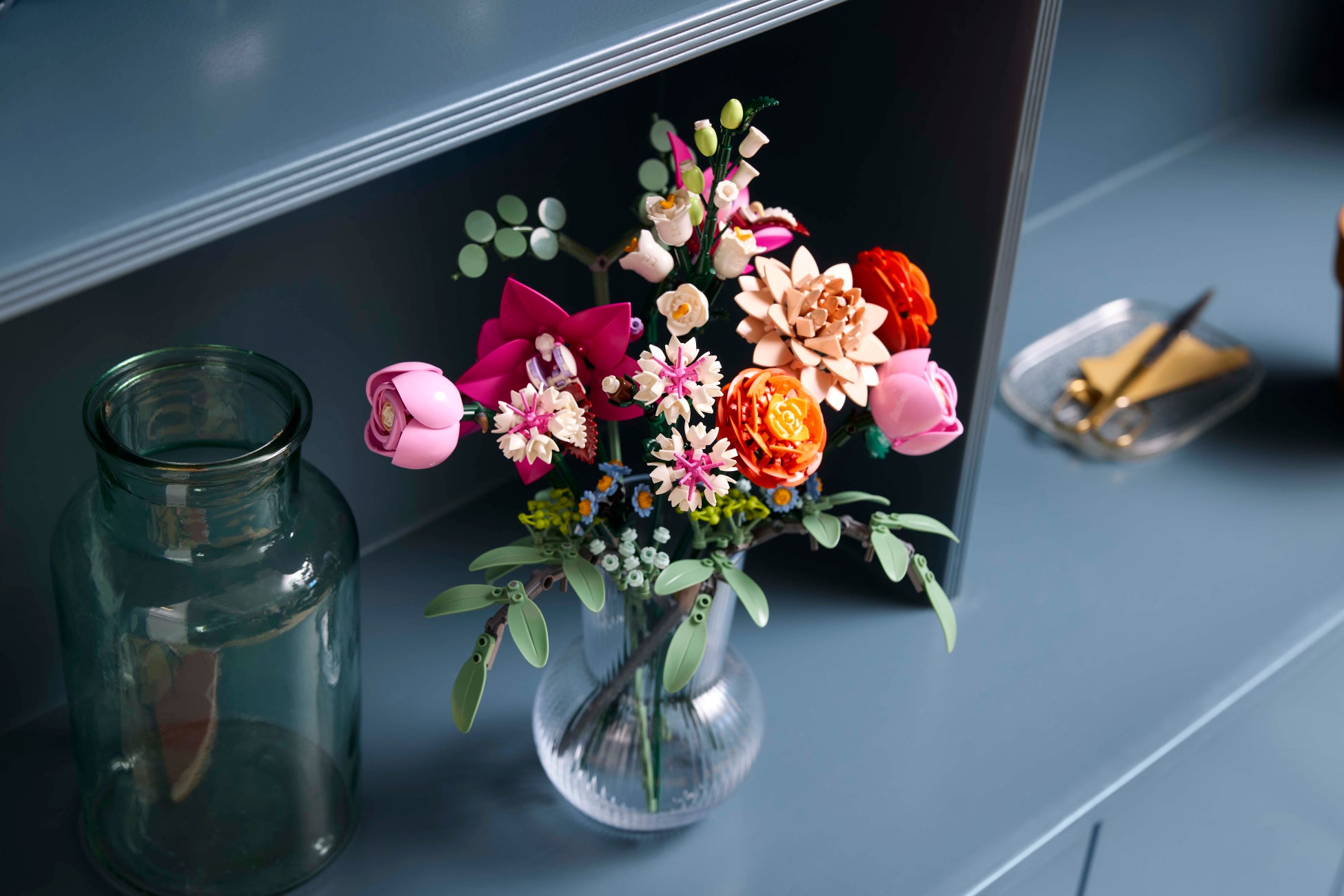 新たに発売となる「レゴ®ボタニカル ピンクのブーケ」は、ヒナギク、ヤグルマギク、ユーカリ、エルダーフラワー、バラ、ラナンキュラス、シンビジウム蘭、スイレン、ダリア、カンパニュラなど15の花の茎と葉で構成されています。すべての茎は長さを調節することができるので、自分でアレンジを楽しみながらフラワーブーケを作ることができます。さらに、カスタマイズして、他の「レゴ®ボタニカル」コレクションのブーケ製品と一緒にアレンジをすることで、オリジナルの大きな花束を作ることも可能です。