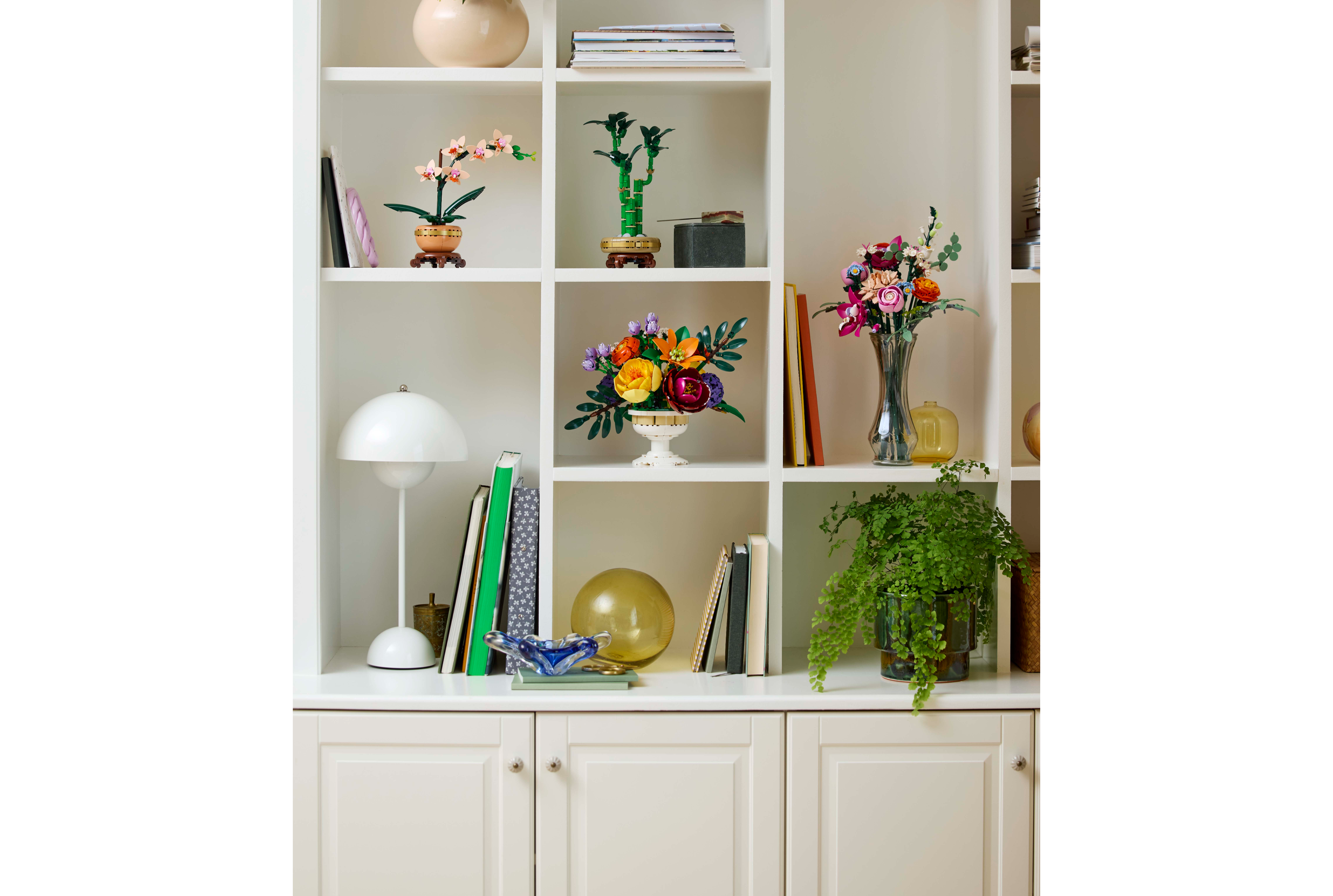 「レゴ®ボタニカル ラン<ミニ>」と「レゴ®ボタニカル ラッキーバンブー」ともに、別で花瓶を用意する必要もなく、そのまま自宅やオフィスのインテリアとして飾って楽しむことができます。なお、「レゴ®ボタニカル ラン<ミニ>」と「レゴ®ボタニカル ラッキーバンブー」は、先に発売された「レゴ®ボタニカル 菊」と「レゴ®ボタニカル 梅」と並べて、その世界観を楽しむこともおすすめです。