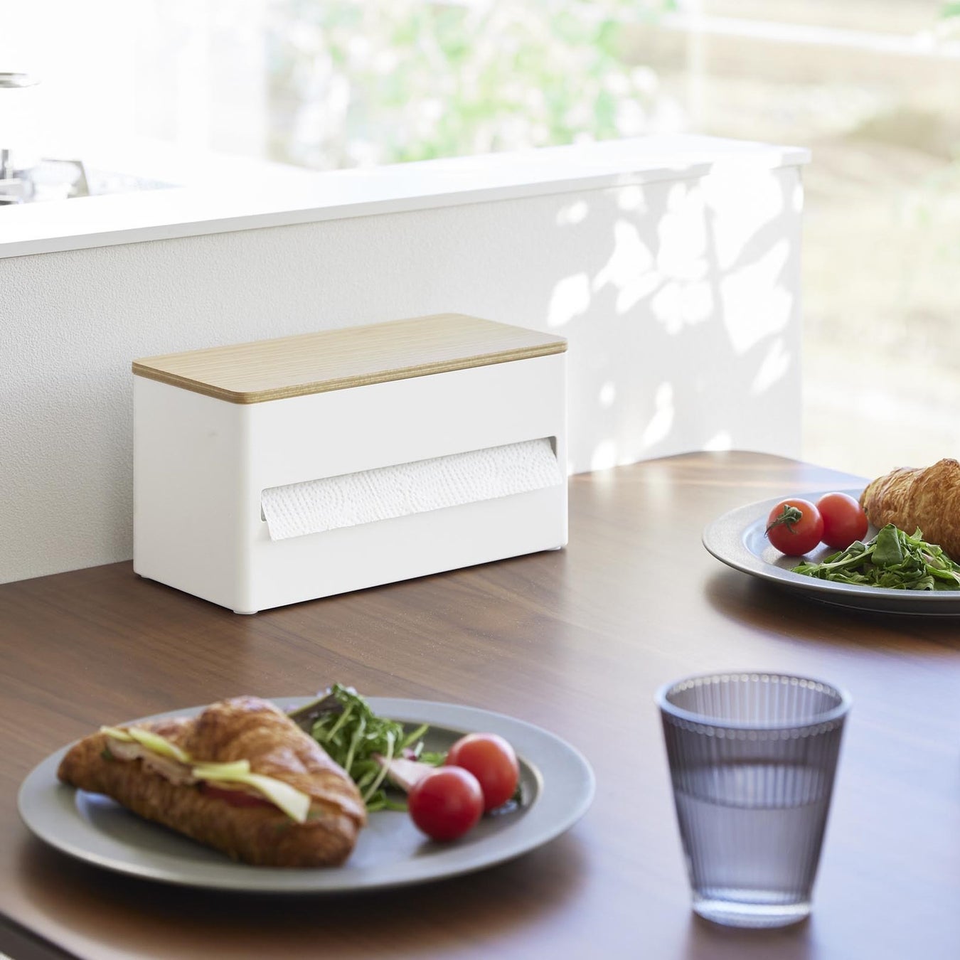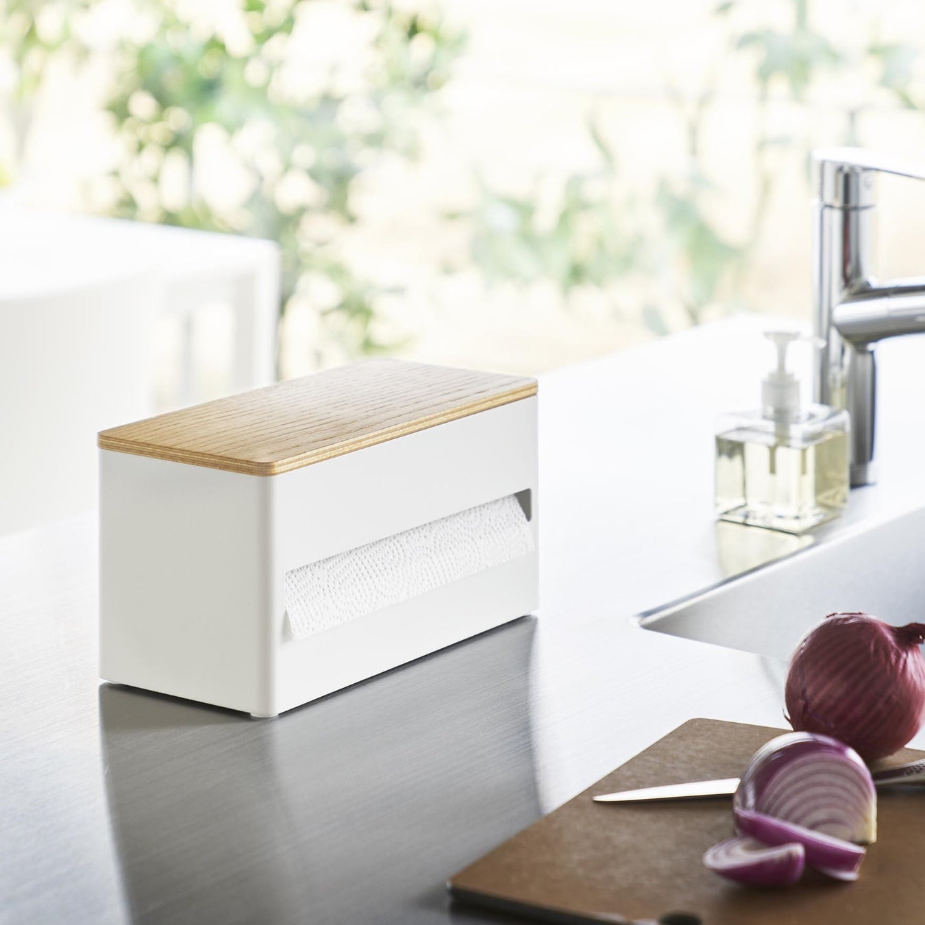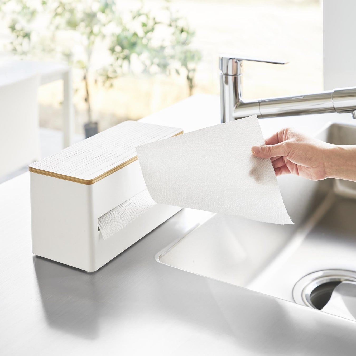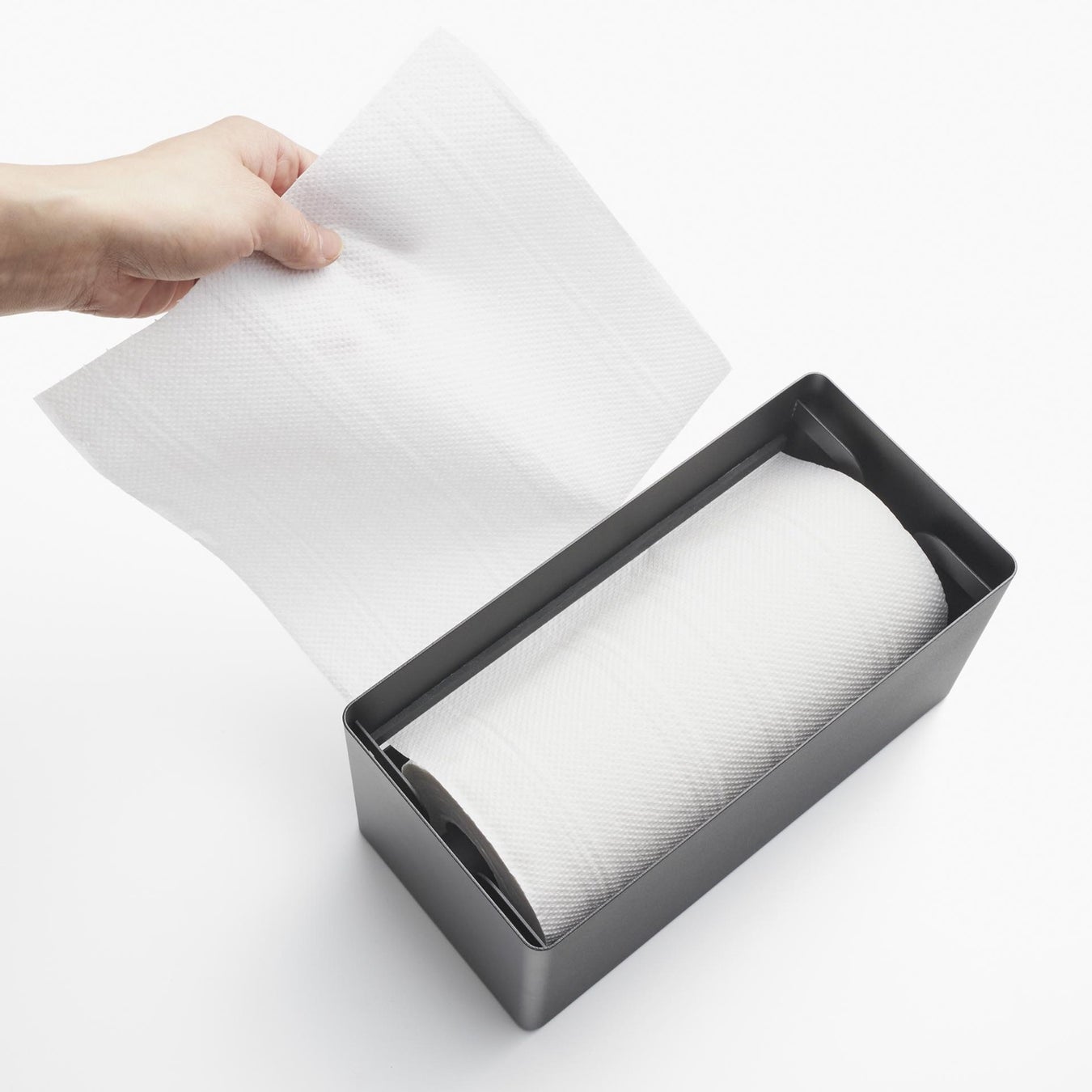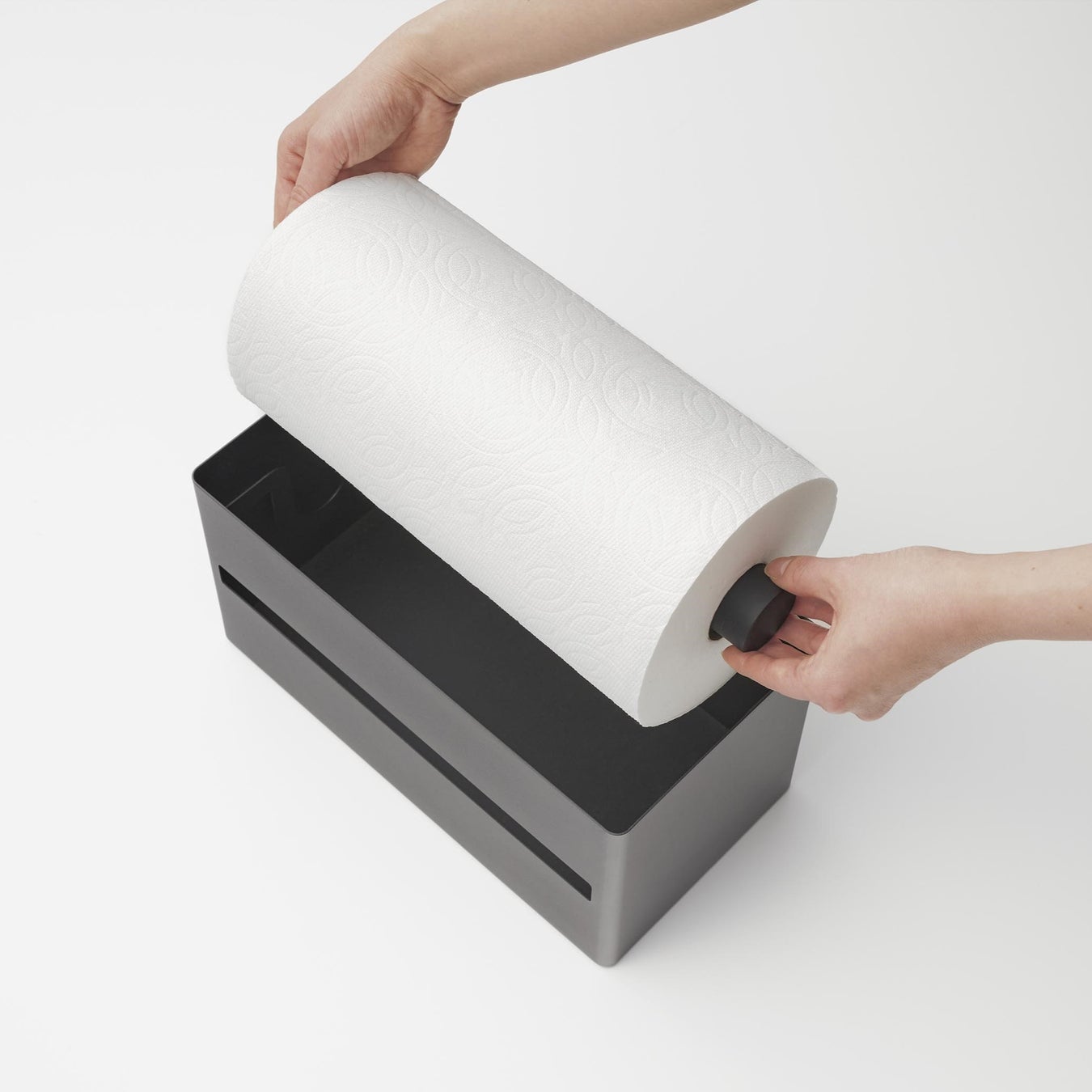 ロール状のキッチンペーパーを隠して収納できる「片手でカット隠せるキッチンペーパーホルダー リン S/L」が発売