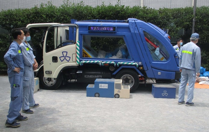 ・中身が見えるごみ収集車「スケルトンパッカー車」との写真撮影やごみ積み込み体験