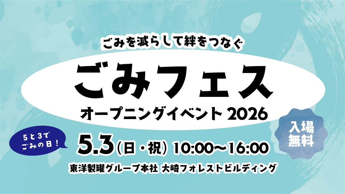 東洋製罐グループホールディングス株式会社(本社:東京都品川区、代表取締役社長:中村琢司)は、2026年5月3日(日・祝)に、「ごみフェス2026」のオープニングイベントを開催します。4回目の開催となる今年も、さまざまなコンテンツを通してごみ削減や資源循環について楽しく学ぶことができる内容となっています。オンラインコミュニティ「滝沢ごみクラブ」の主宰であるお笑い芸人兼ごみ清掃員のマシンガンズ滝沢秀一氏とゲストによる、海ごみをテーマにしたトークセッションを実施します。あわせて、中身が見えるごみ収集車「スケルトンパッカー車」の展示・体験なども行います。