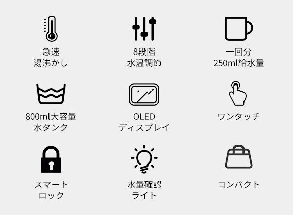 【8段階温度設定・持ち運び便利・水量/温度感知センサー搭載】