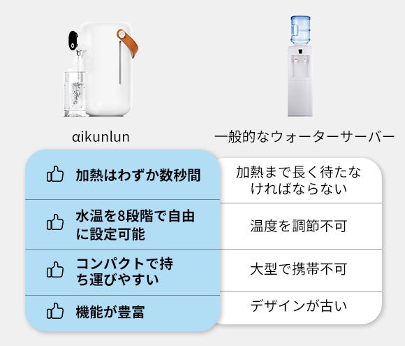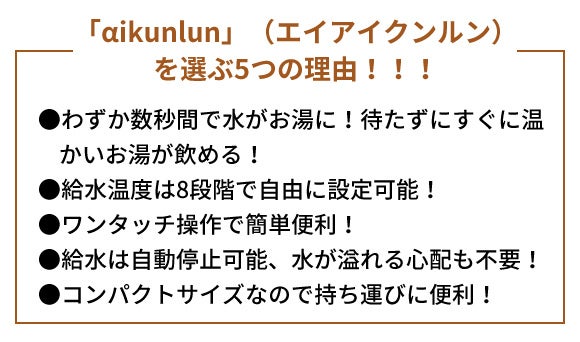 ワンタッチ・数秒間で水がお湯に!待たずにコーヒーを楽しめる!急速湯沸かしウォーターサーバー「αikunlun」