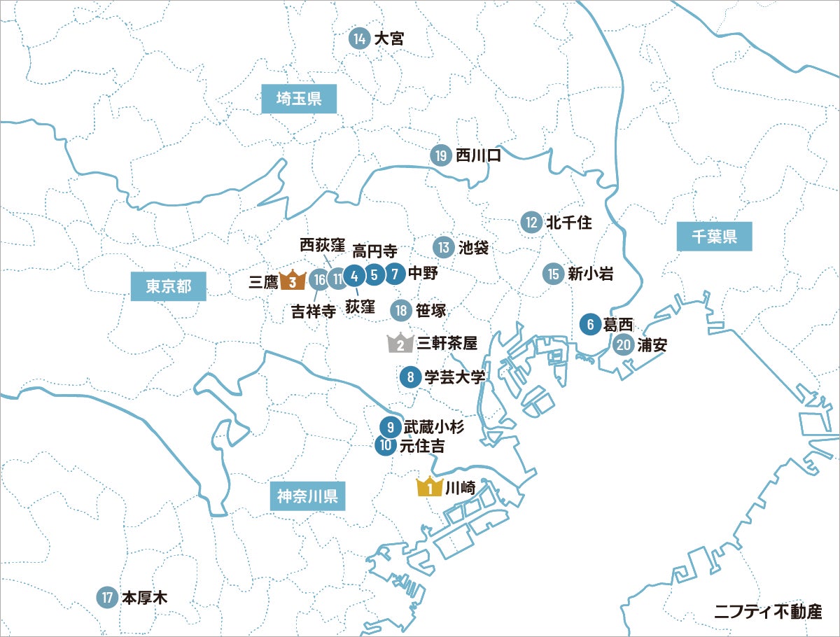 「三鷹」「荻窪」「葛西」、23区外周エリアが躍進