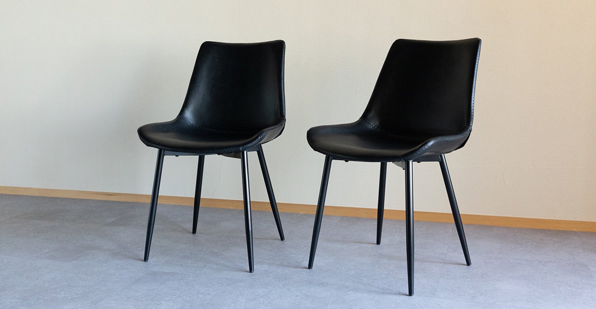 ダイニング5点セットには、高級感のある洗練されたデザインのチェアが同色4脚、付属します。チェア色はブラック、ブラウンの2色からお選びいただけます。