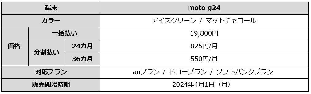 株式会社オプテージ(大阪市中央区)は、携帯電話サービス「mineo(マイネオ)」において、「moto g24」の販売を2024年4月1日(月)より開始いたします。