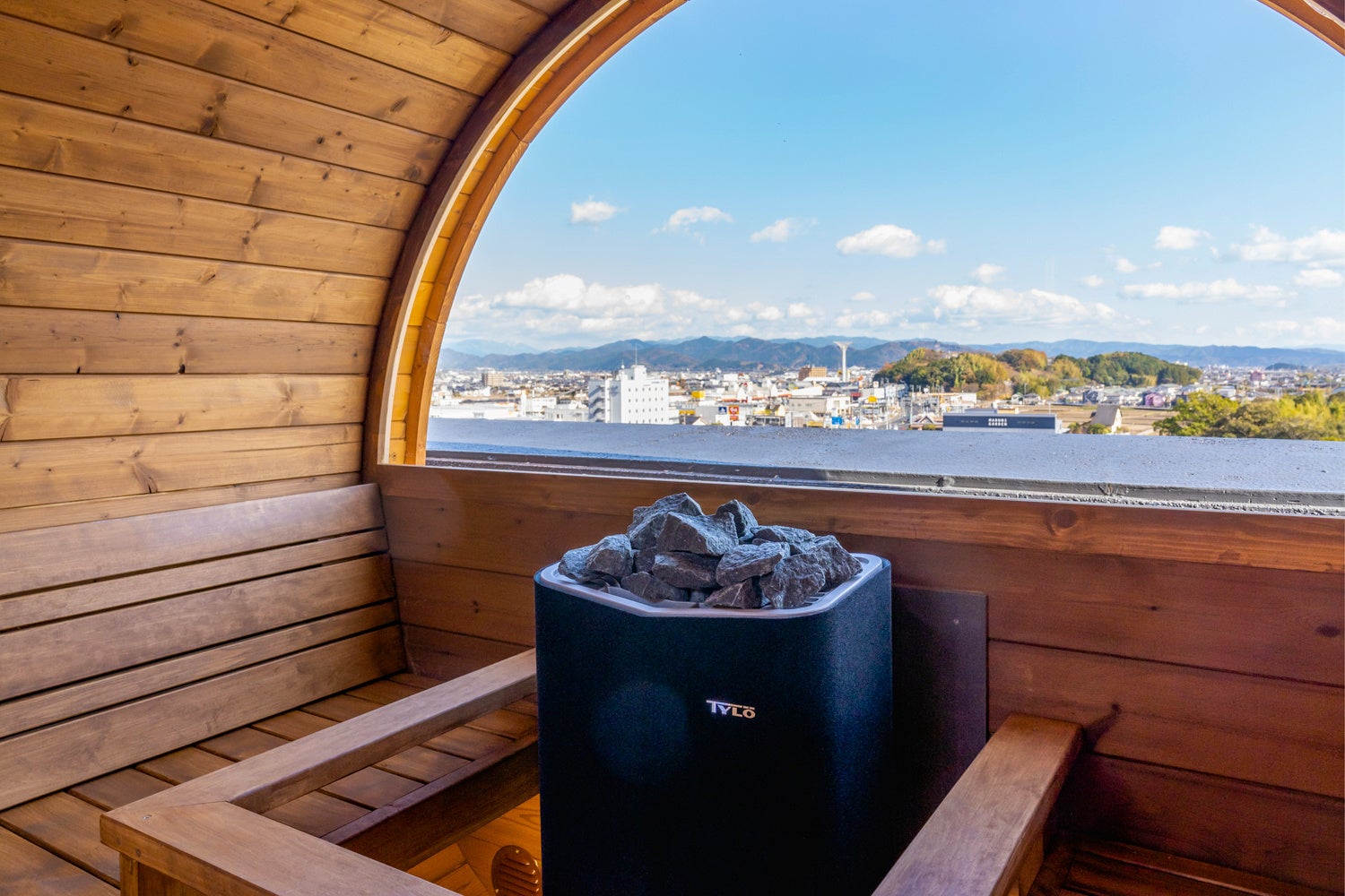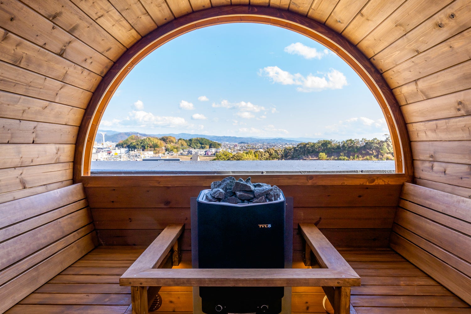 ◆開放的な屋上での“ととのい”体験 北欧風バレルサウナ