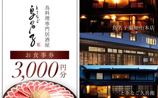 鳥名子 お食事券3,000円分 寄附額:10,000円