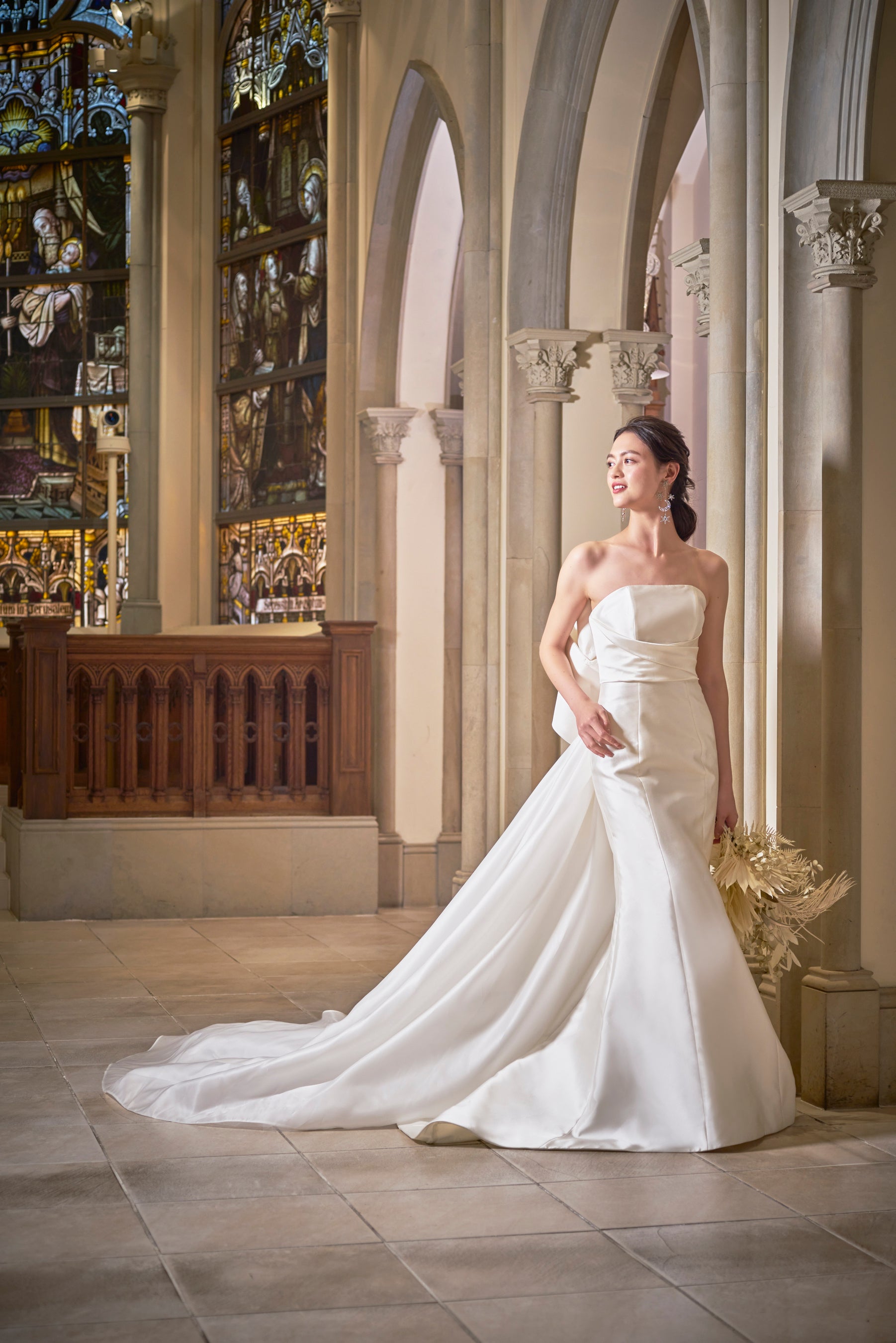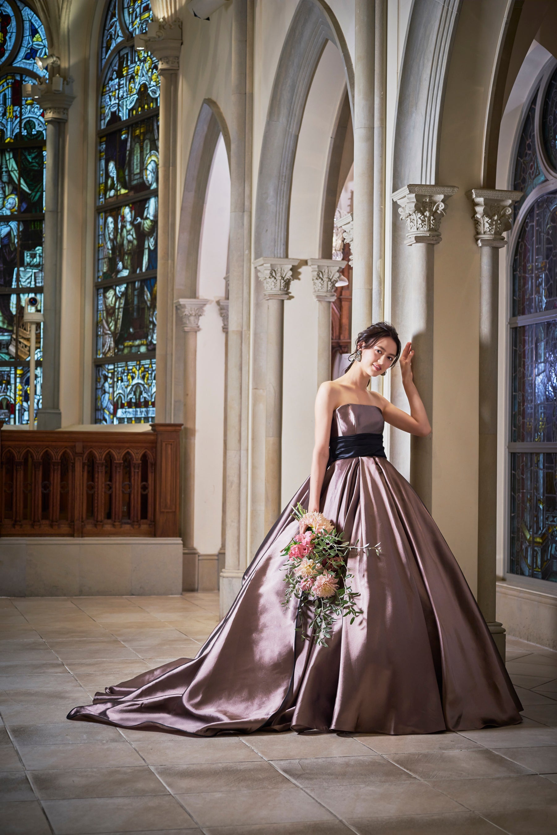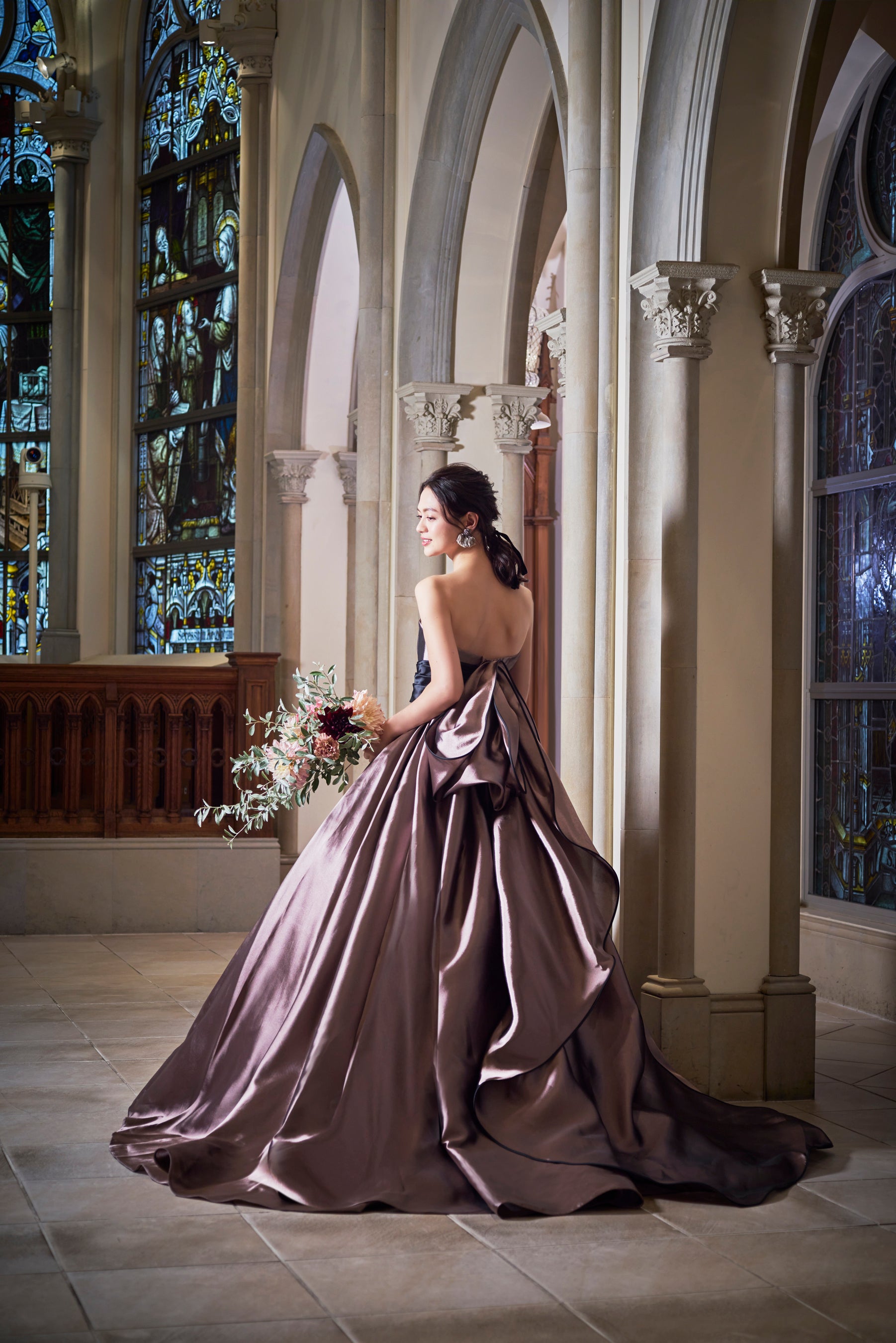 ボリュームある後ろ姿の対比と構築的なリボンレーンがあしなわれたドレスや、ベスト-アニバーサリーオリジナルエクスクルーシブモデルも登場、肌に優しくなじむブラウンにブラックカラーのウエストシェイプが期待できるサッシュベルトもポイントに。カラードレス迷子になっている花嫁にお勧めしたいドレスラインナップも期間限定でお目見えいたします。