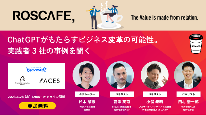 【6/28 12:00〜】ChatGPTがもたらすビジネス変革の可能性をテーマに、bravesoft代表取締役CEOの菅澤がパネリスト登壇いたします