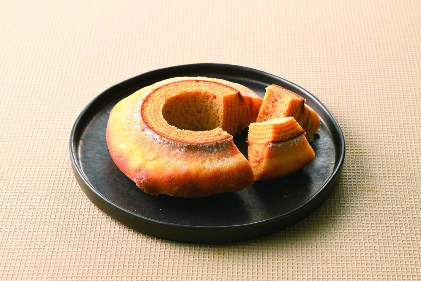 1985年、福井県丸岡町に創業した地元で愛される製菓店。一つ一つの素材にこだわったシンプルであたたかみのある味わいの洋菓子がそろいます。プレーン味のバウムクーヘンを複数展開する同店の中でも人気の「バウムッシュ」は、香り高い醗酵バターを贅沢に使用し、濃厚で重厚感ある味わいが特徴のハードタイプのバウムクーヘンです。