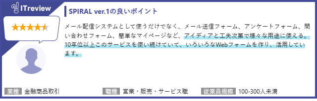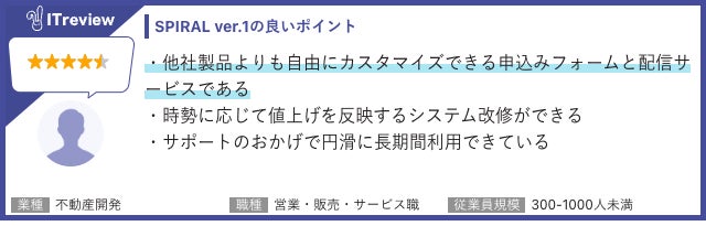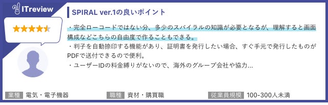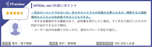 「SPIRAL ver.1」に対するITreviewユーザー評価 ※一部抜粋