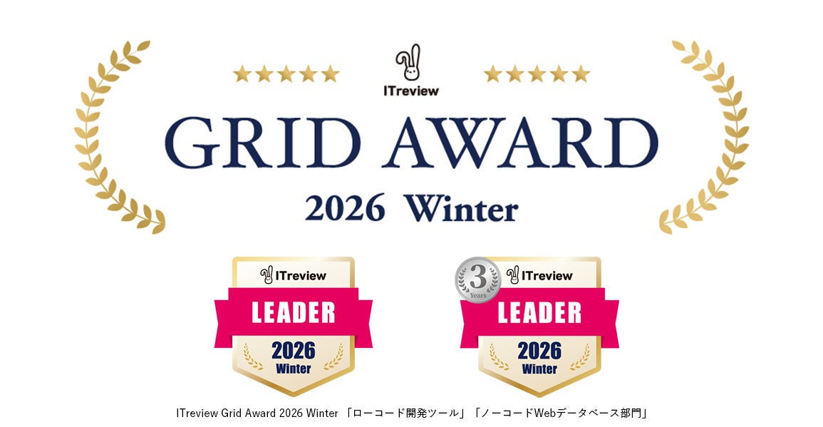 『ローコード開発ツール』では18期連続、『ノーコードWebデータベース』では19期連続の受賞となります。