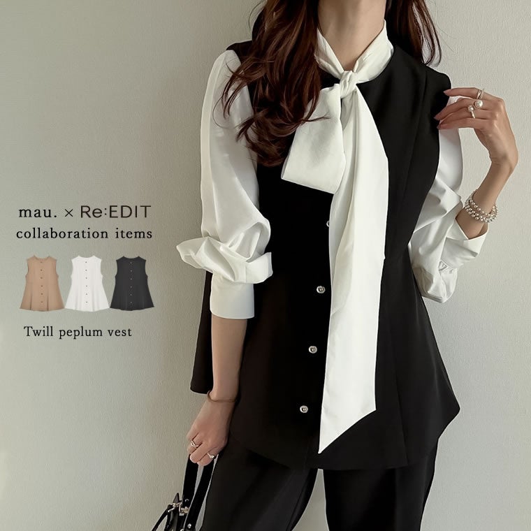 大人気インフルエンサーmau×Re:EDIT(リエディ)の初コラボが実現!大人女性が品よく着映えるペプラムベストとテーパードパンツの販売がスタート