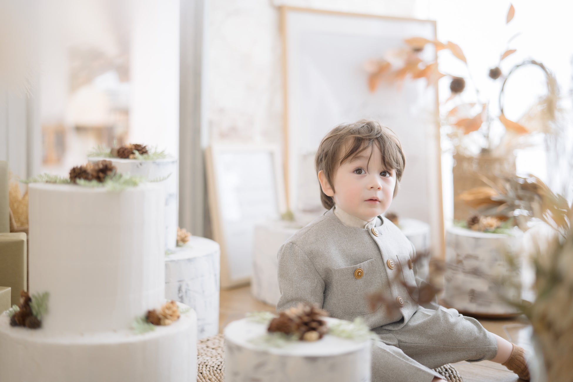 ~お子さまの成長の節目は、ゆったりと時間が流れるプライベート空間で。⾊合いにも質感にもこだわったコフレオリジナルのお⾐装で七五三やバースデーフォト、お食い初めなども~