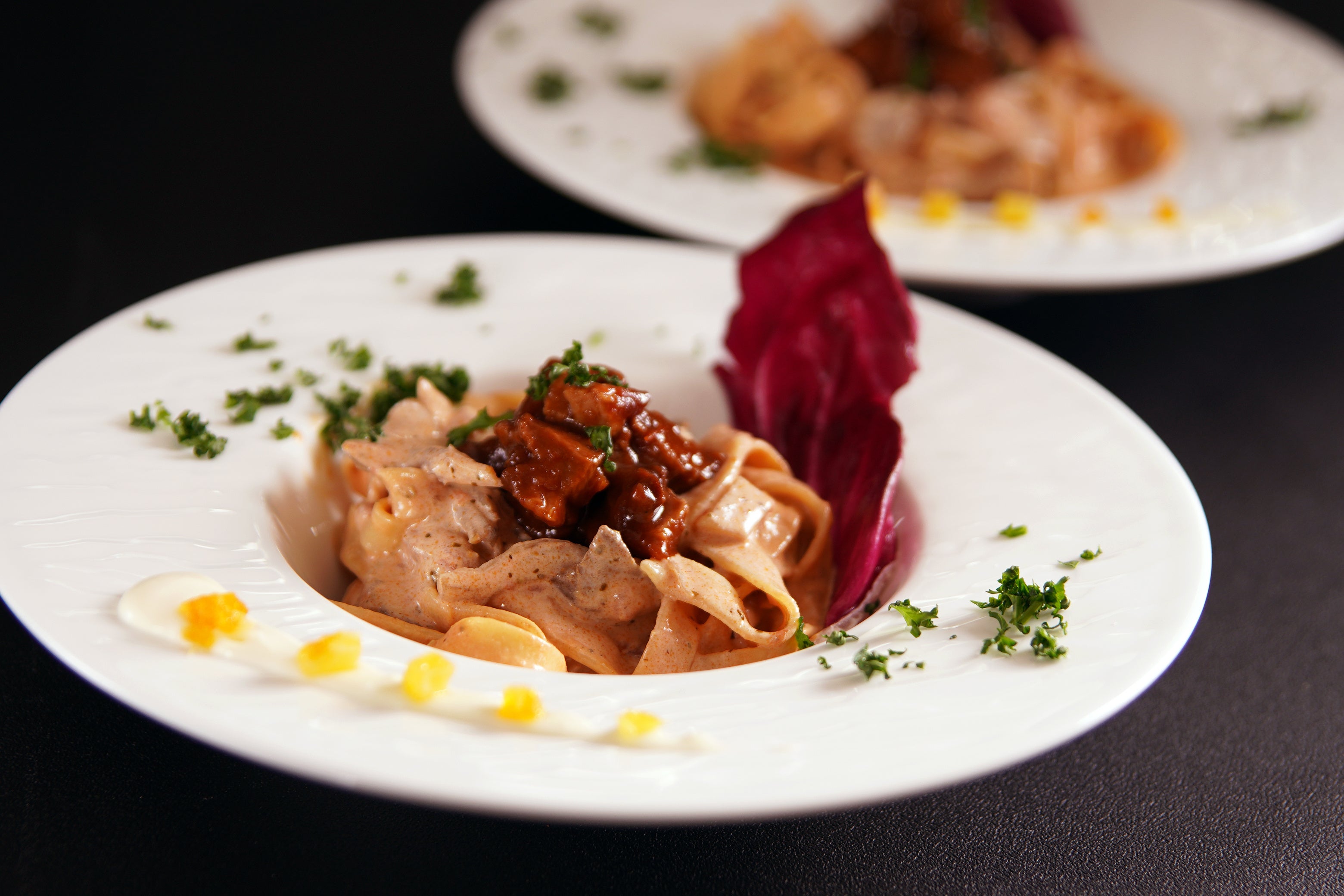 ・鴨肉のラグーと季節野菜のタリアテッレ