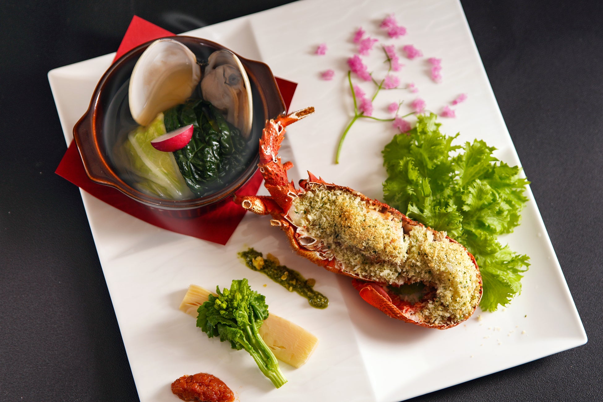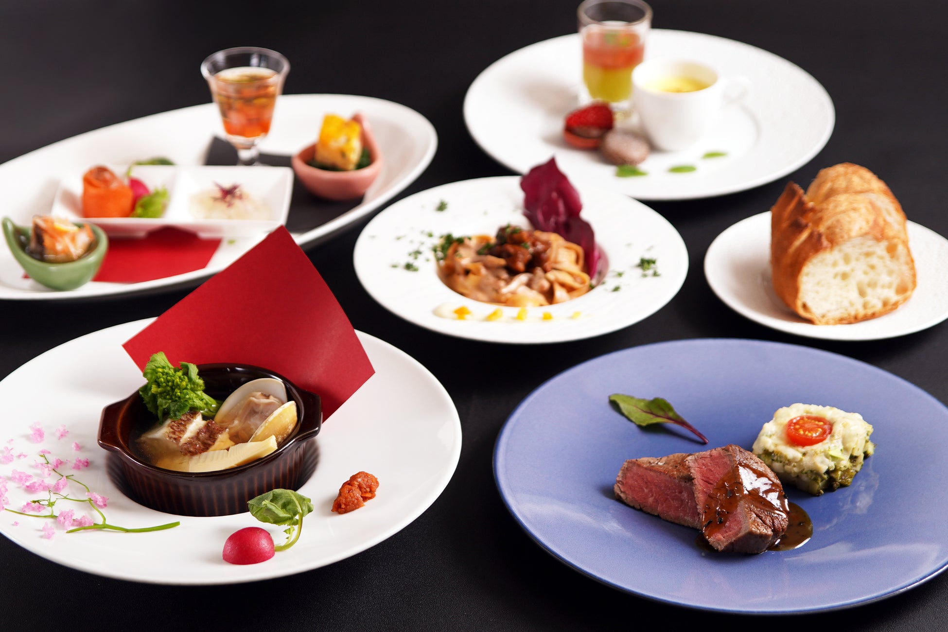 黒毛和牛やイセエビ、鮑などの厳選素材を贅沢に使用したメニューを