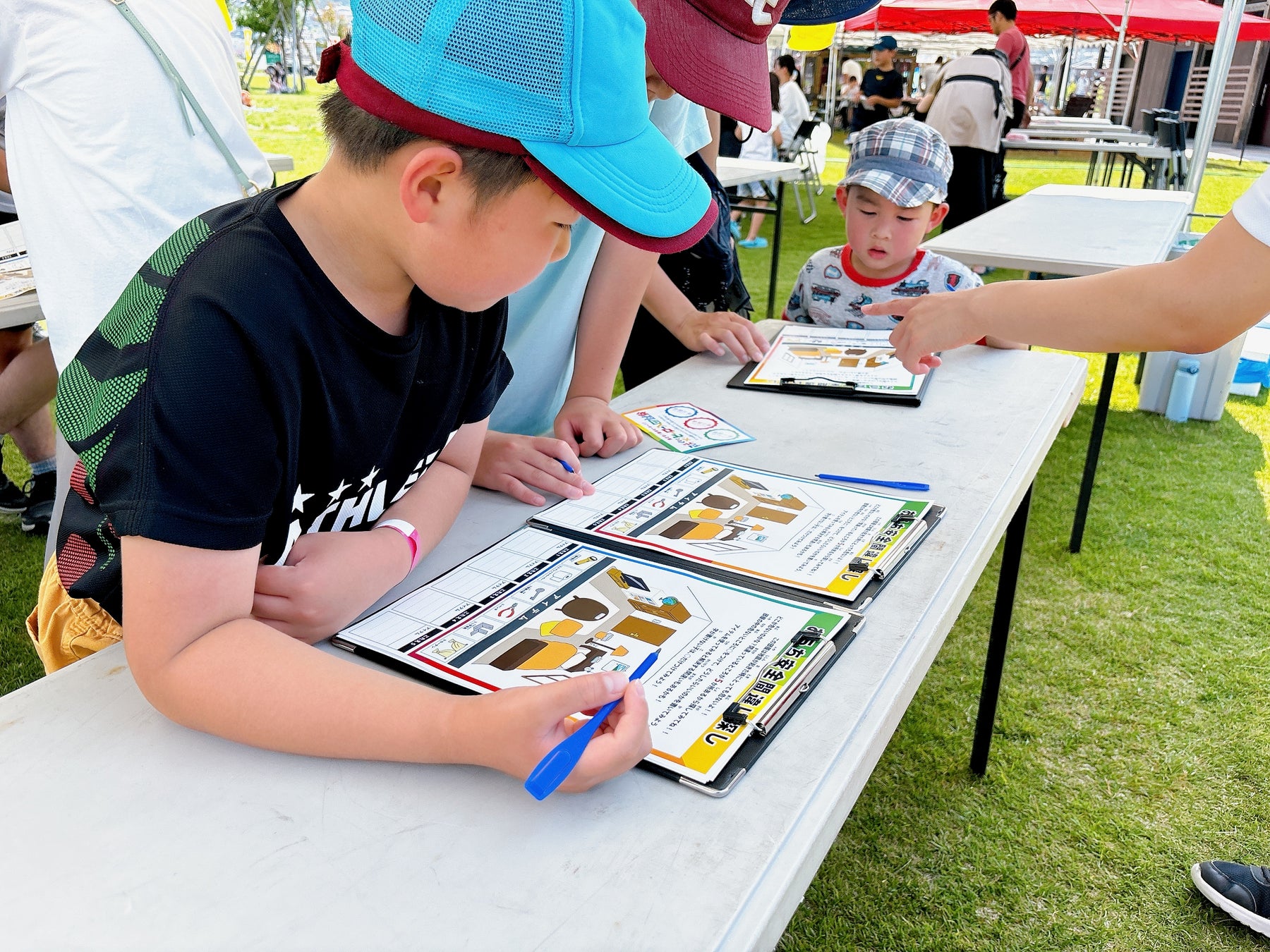 小学生以下を対象に、災害で使用される「防災スリッパづくり」や防災について学べる「防災ウォークラリー」を実施 厚木市消防本部の消防車を模したバッテリーカー乗車体験や防火服着用体験も実施!