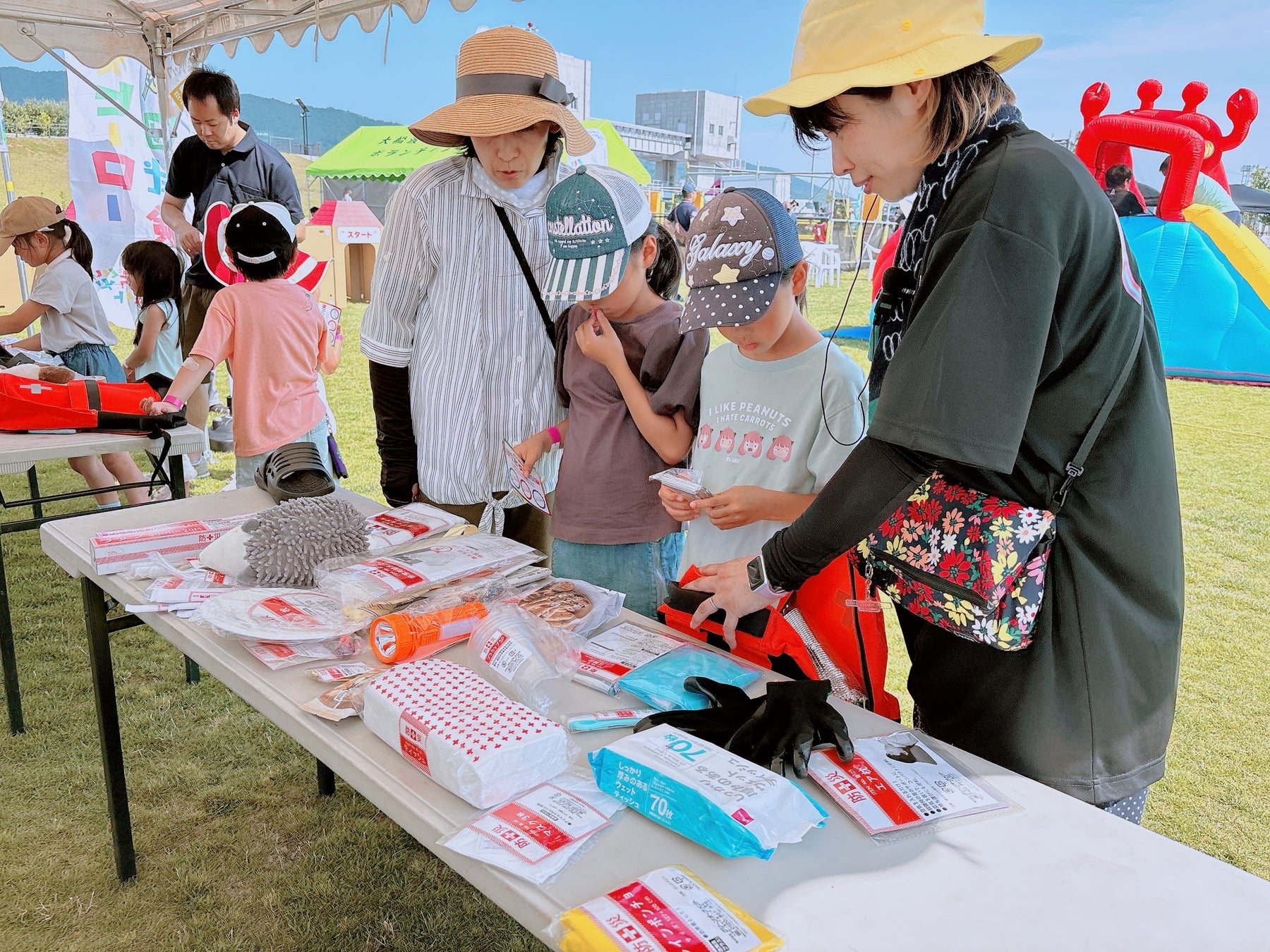 昨年9月には、関東大震災から100年の節目であることを契機に、初めて「防災フェスタ」を開催。段ボール消防車で疑似消火体験、ろ過装置の作成体験・サバイバル教室、消防士との記念撮影を実施しました。2回目の開催となる今年は、防災をより身近に感じていただくために、楽しく学べるコンテンツを企画しています。