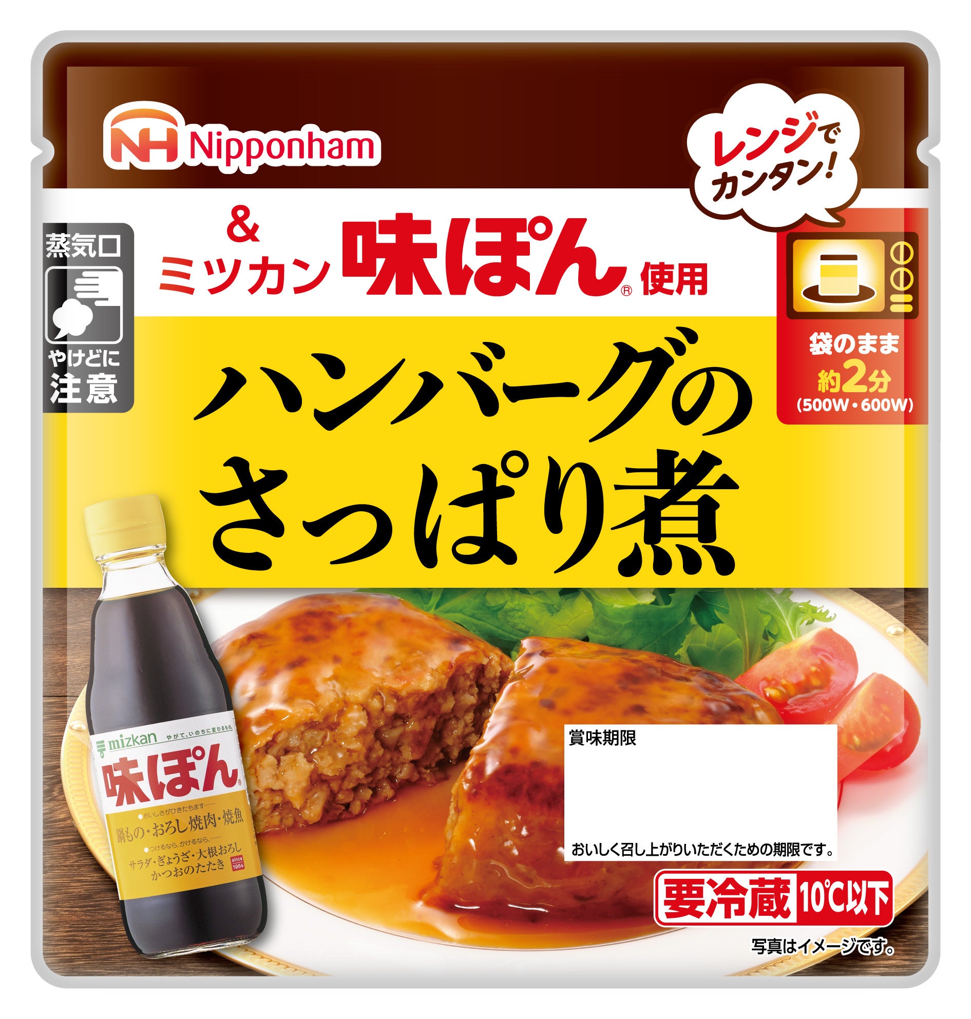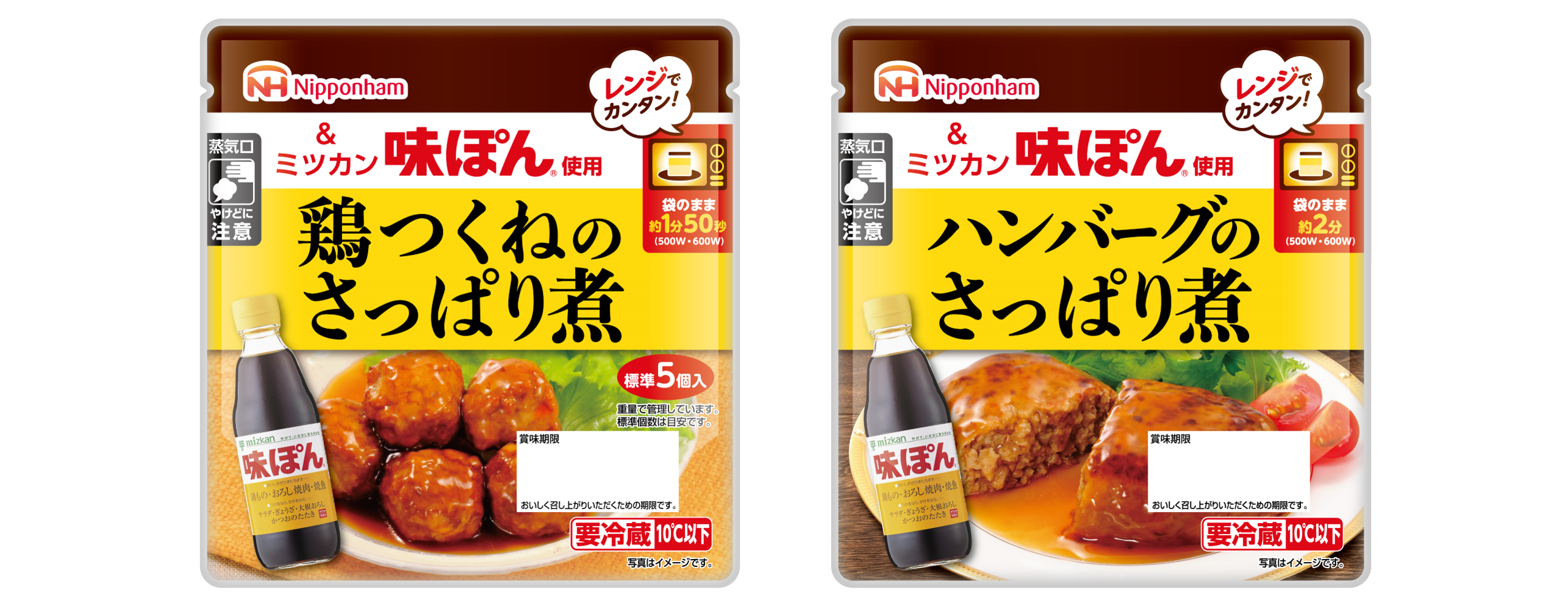 株式会社Mizkan(本社:愛知県半田市、代表取締役社長兼CEO:吉永 智征、以下ミツカン)と、ハム・ソーセージ、調理加工品の製造を行っている日本ハム株式会社(本社:大阪市北区、社長:畑 佳秀、以下日本ハム)は、食品メーカーの垣根を越えたコラボレーション企画として、ミツカンのロングセラー商品である「味ぽん」を使った、日本ハムの新商品「鶏つくねのさっぱり煮」「ハンバーグのさっぱり煮」を9月1日に発売しました。