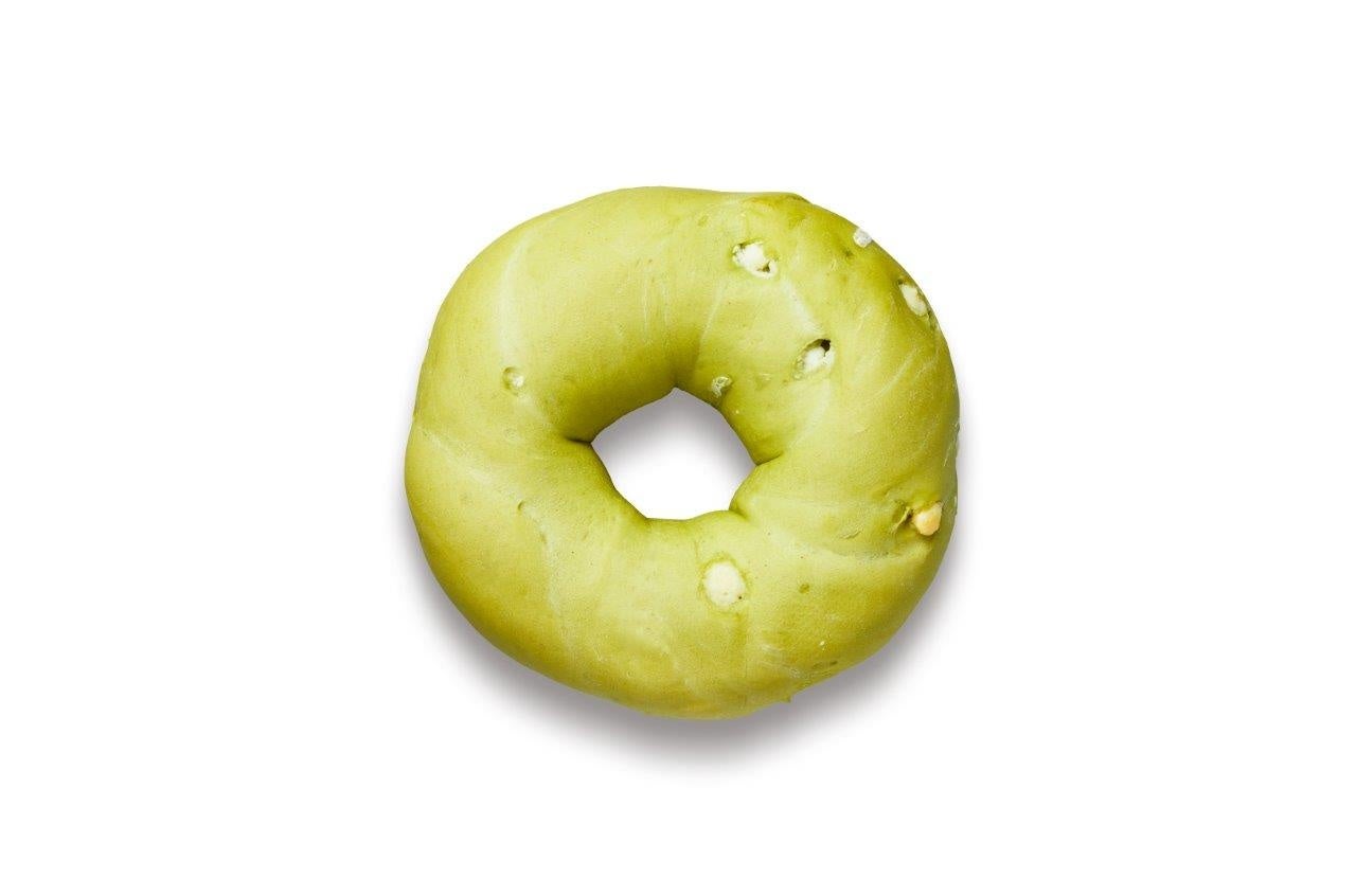 ホワイトチョコが練りこまれた、食べごたえのある抹茶味のベーグル。