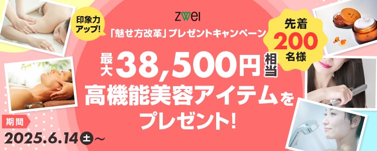 本キャンペーンでは、「ZWEI(ツヴァイ)」へ新規ご入会された方の中から先着200名様に、最大38,500円相当の高機能美容ギフトをプレゼント。 「清潔感」「好印象」「自分らしさ」を後押しする選べる5つのギフトを通じて、婚活を前向きにスタートするあなたを応援します。