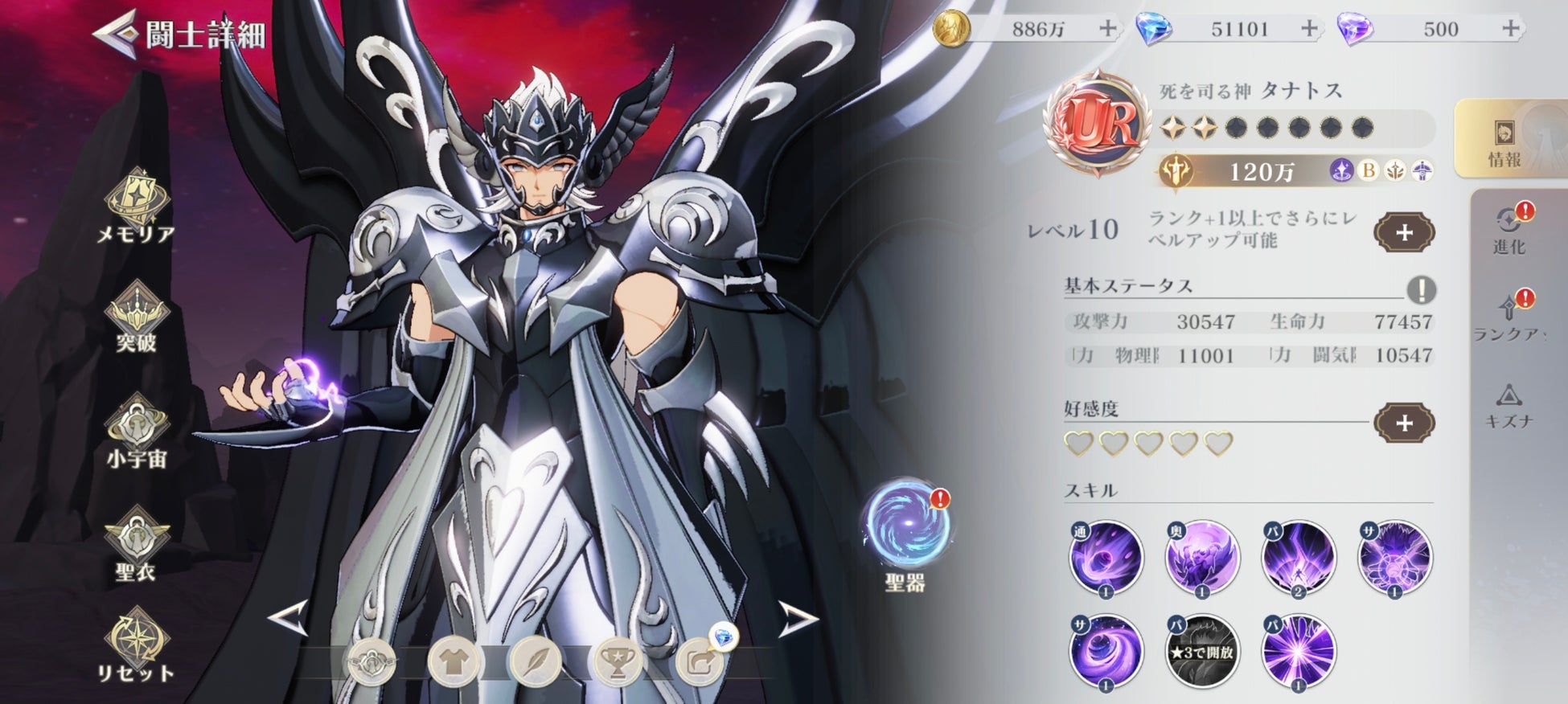 ■新コンテンツ「時空乱闘」開放、「死を司る神・タナトス」を獲得可能