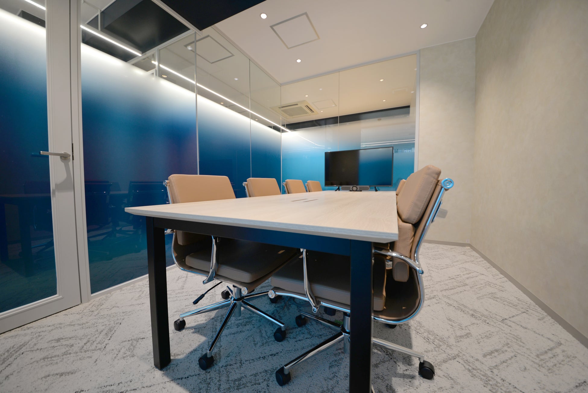 ③ コミュニケーションスペースには、個別相談も可能な会議室(1室)とカウンターを設置し、2ヵ所にモニターを配備。支店担当者に直接ご相談いただけることはもちろん、モニターで当グループ専門チームとオンライン相談が可能。