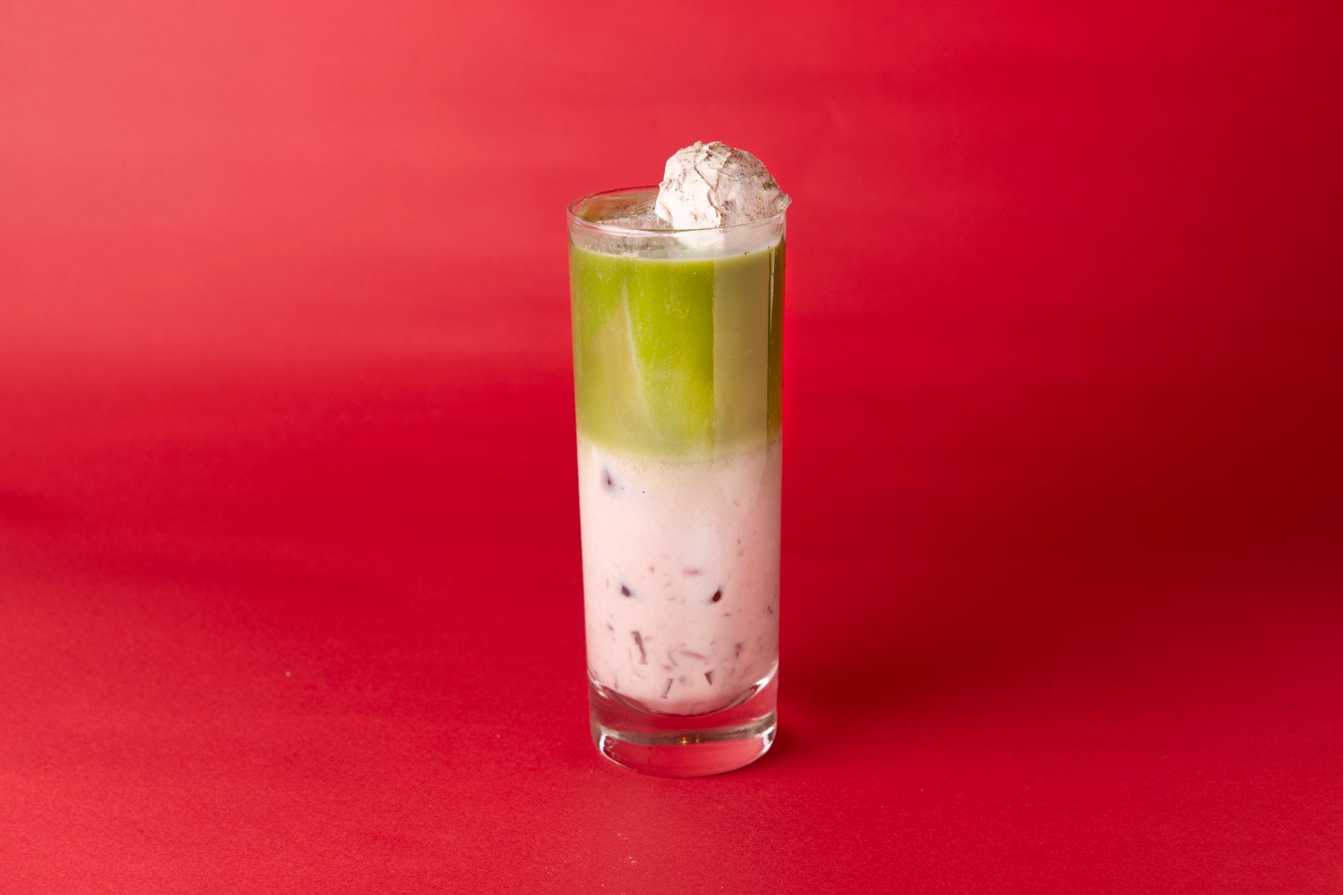 棚橋選手の好物をイメージ。小豆ミルクと本格宇治抹茶、わらび餅で「和」の融合を楽しめるスイーツドリンクです。
