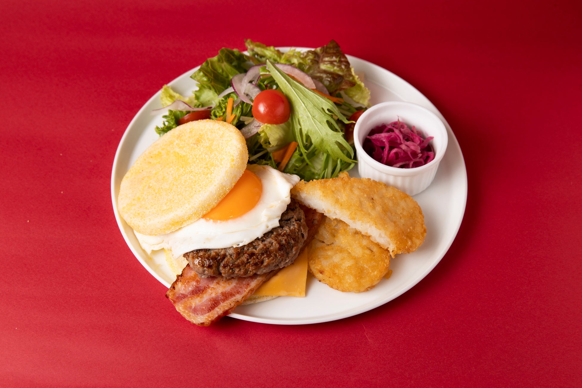 イギリスでの修行経験と、海野選手の品格ある佇まいや情熱をイメージしたイングリッシュマフィン。柔らかいマフィンとジューシーなパティは老若男女問わず好まれるクラッシックなバーガーです。