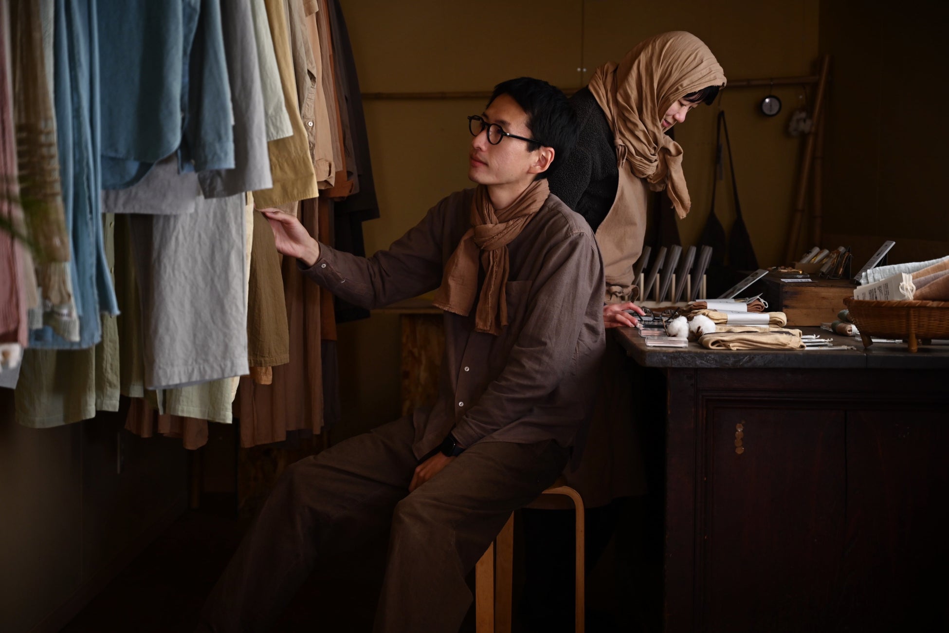 2018年8月、「染色した商品をきっかけに地元の魅力を知ってほしい」という思いで、“アップサイクル染色クリエイター”である関将史・裕子ご夫妻が茨城県土浦市にオープンさせた<futashiba248(フタシバ)>は、地元・茨城県の農家から譲り受けた農業廃棄物から染液を作り、染色するファッションブランドです。染色後の原料や使い古された製品の一部は「堆肥化」するなど循環できるものづくりを行っています。また、オーガニックコットンや和紙など環境負荷の少ない素材を使い、受注生産やジェンダーレスなデザイン・サイズ展開を取り入れることで資源ロスを減らす取り組みも行っています。
