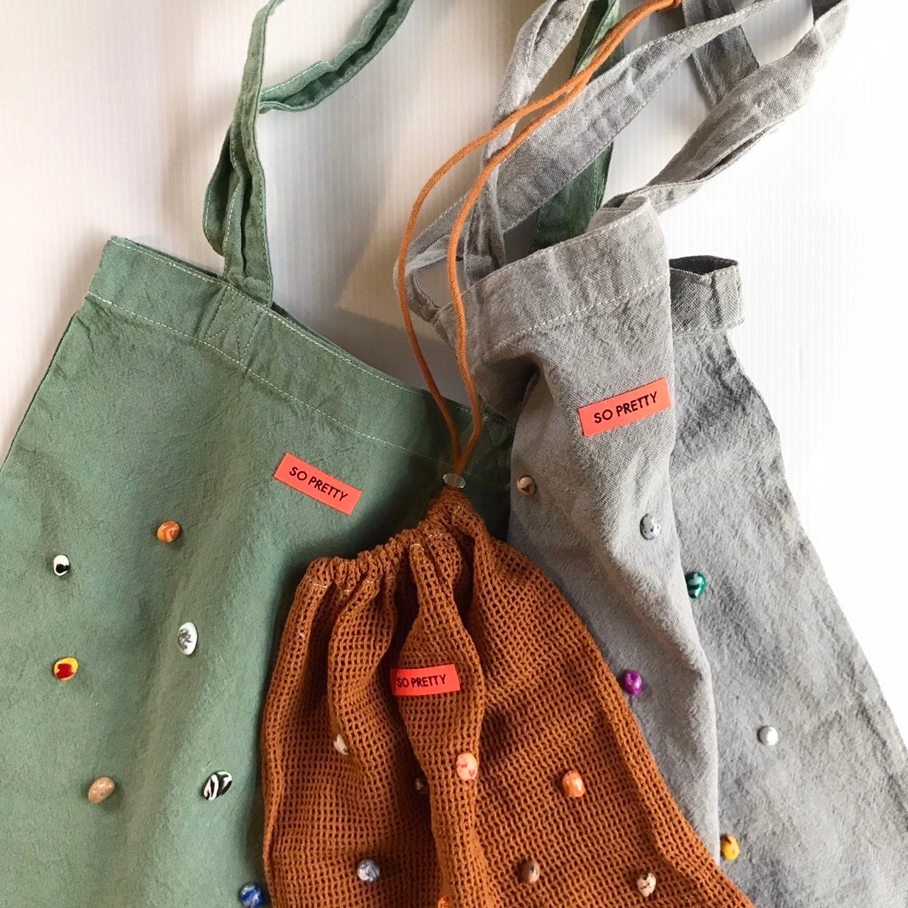 2021年12月からは、染色の幅を広げ、紙・木材・陶器など布地以外の物を染めることにもチャレンジしており、今回のPOP UP SHOPでは、クラフトバンド(再生紙)作家<megu’s works>とコラボレーションしたバッグや小物のほか、<SO PRETTY>とコラボレーションしたトートバッグ等も販売します。