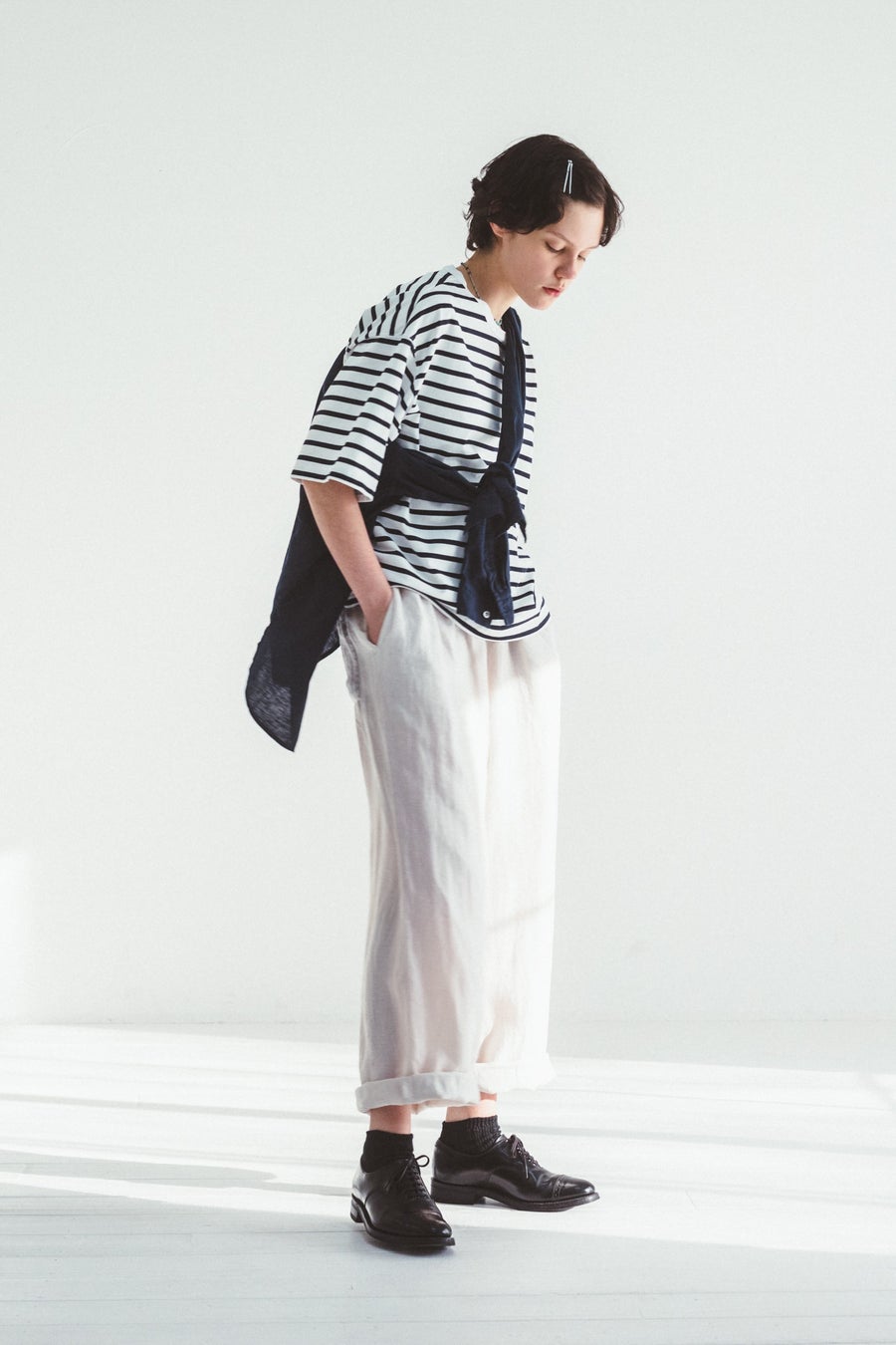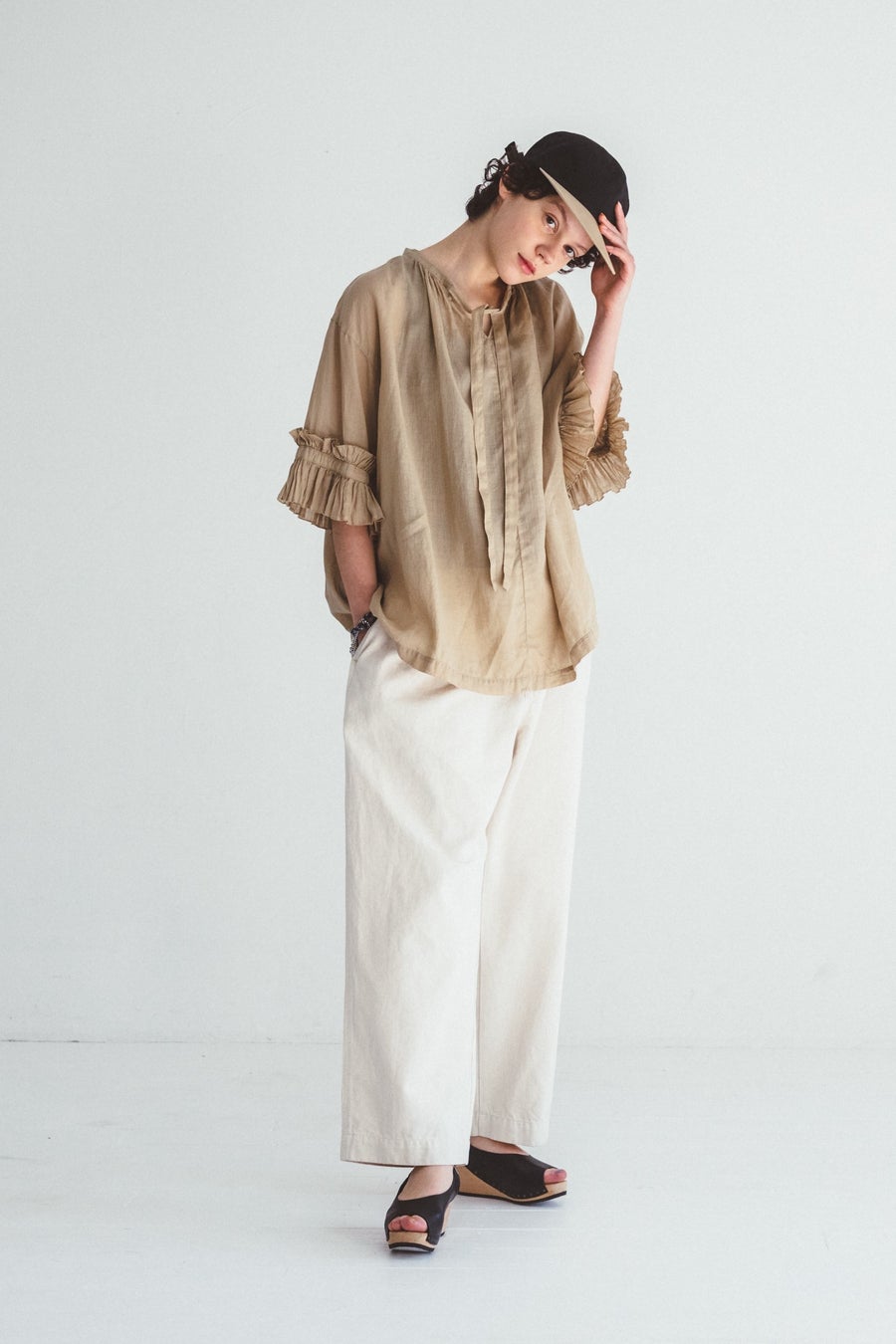 「SLOW MADE IN JAPAN」をコンセプトに着心地の良さを追求したファッションブランド。わたしたちが提案するリネンをメインとした天然素材で仕立てた服は、着込む程に身体に馴染み、風合いが増します。経年変化を楽しみながら、服と共に歳を重ねる。そんな長年愛用頂けるような1着を提案いたします。
