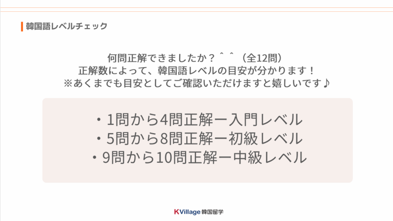 ・韓国語レベルについて自分の現在地を把握できて良かったです
