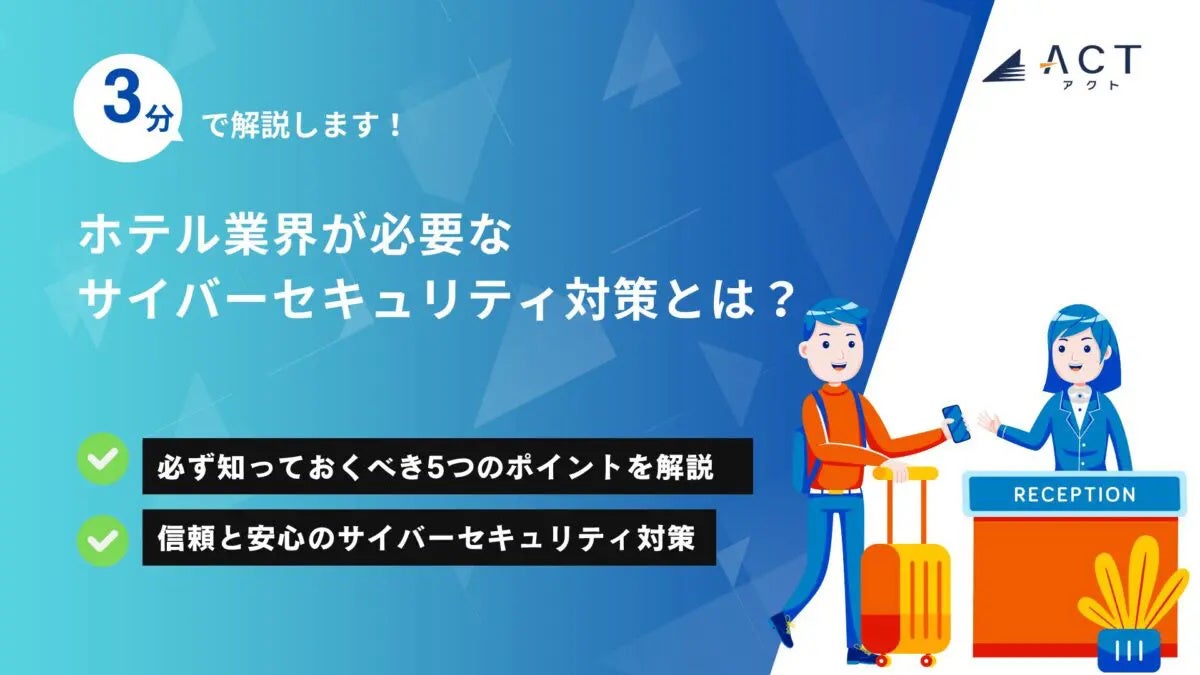 今年30周年を迎え、サイバーセキュリティ事業などを行う株式会社アクト(本社:東京都文京区、代表取締役CEO 小林 智彦 、以下 アクト)は【3分で解説!ホテル業界が必要なサイバーセキュリティ対策とは?】のホワイトペーパーを公開しました。