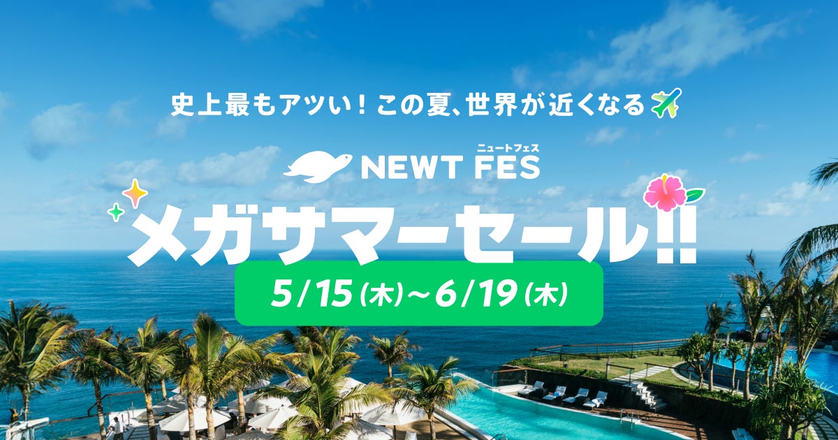 2025年、日本人の海外旅行への意欲は高まっていますが、円安や物価高の影響により、旅行費用の負担が増しています。こうした状況の中、NEWTは「かんたん、おトク、えらべる、あんしん」をキーワードに、誰もが気軽に楽しめる旅行体験をご提案します。夏休みに向けて、海外の人気エリアが超おトクに予約できる「NEWT FES メガサマーセール」を開催し、もっとワクワクする旅行をご提供します。