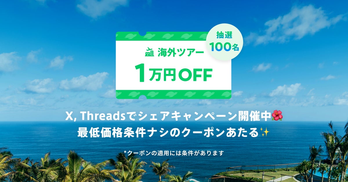セール開始に先立ち、2名以上の旅行で使えるクーポンをプレゼントする事前キャンペーンを実施中です。最低価格条件はなく、毎日シェアすることで当選確率がアップしますので、ぜひご参加ください。