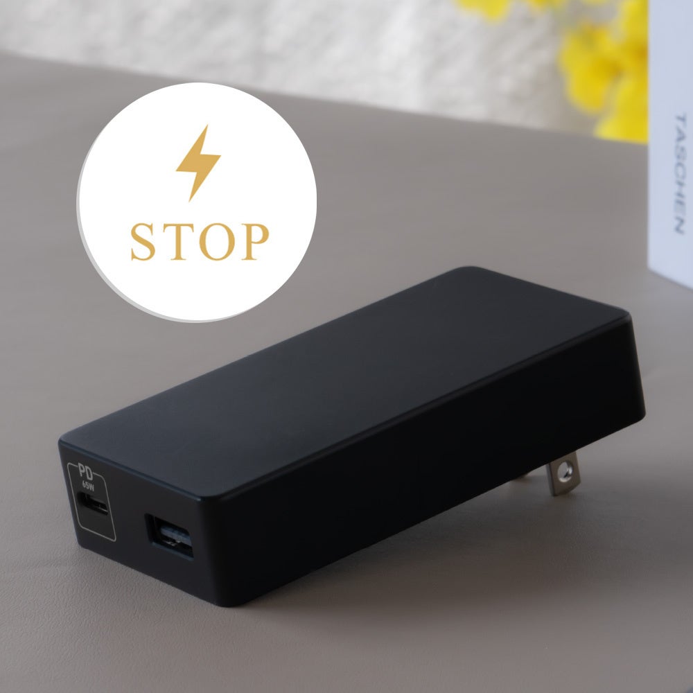 USB Type-CポートとUSB Type-Aポートの同時使用で、2つの機器を一度に充電できます。複数の機器を充電したい時に効率よく充電が行えます。※2ポート同時使用時は合計最大57W出力となります。