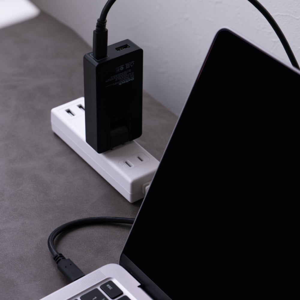 USB Type-C×1ポートとUSB Type-A×1ポートを活用し、スマートフォンもノートパソコンも同時に効率よく充電できる。